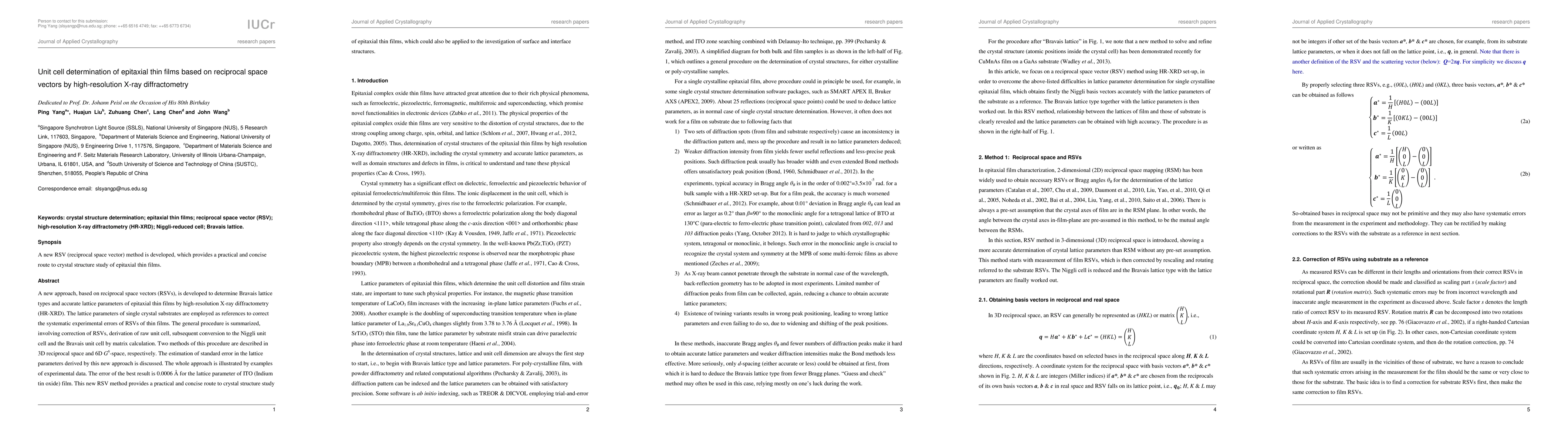 This paper introduces a novel method for determining the unit cell of epitaxial thin films using reciprocal space vectors and high-resolution X-ray diffractometry, correcting systematic errors by referencing single crystal substrates. The method, illustrated with ITO film, achieves a lattice parameter error of 0.0006 Å, offering a practical approach for the study of epitaxial thin films and surface structures.