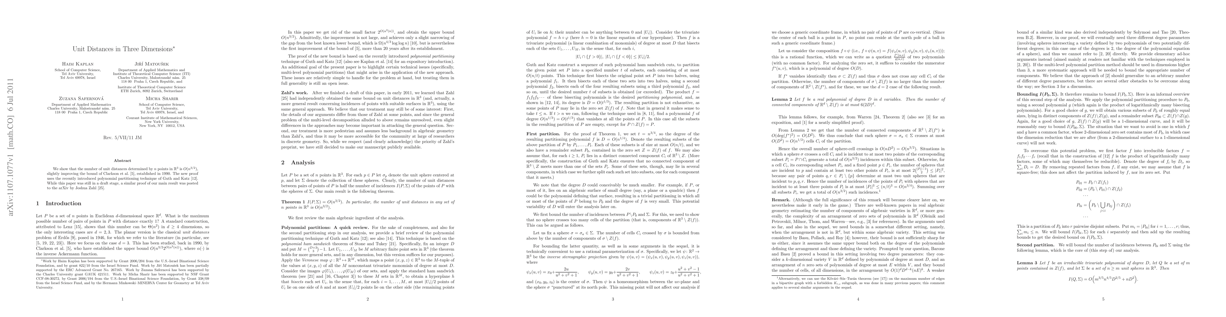 Researchers have improved the bound for calculating unit distances in 3D space determined by n points, now showing it's O(n^{3/2}). This slight improvement uses a new polynomial partitioning technique.