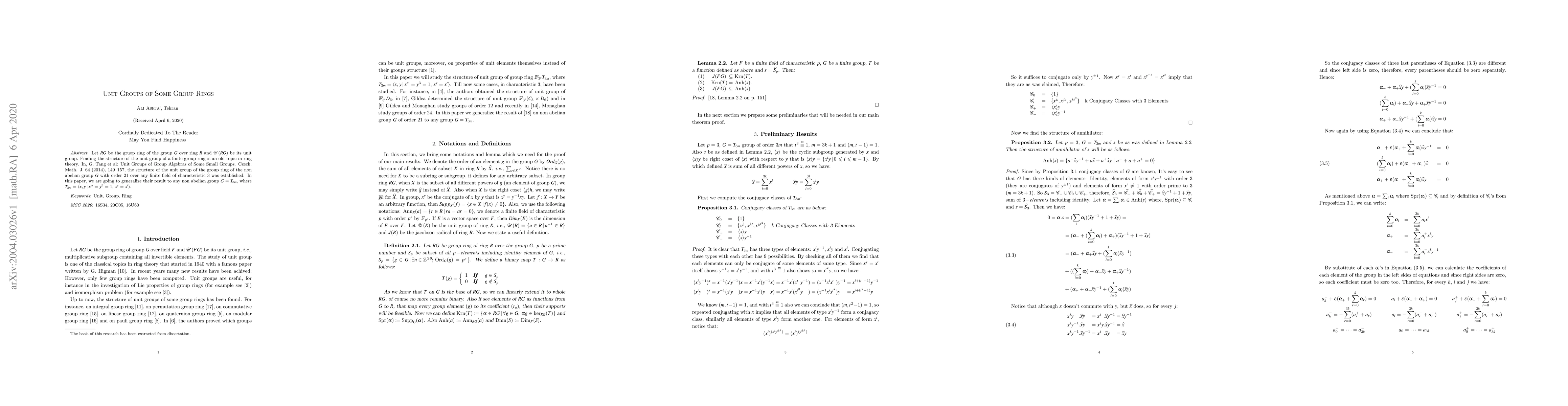 Let $RG$ be the gruop ring of the group $G$ over ring $R$ and $\mathscr{U}(RG)$ be its unit group. Finding the structure of the unit group of a finite group ring is an old topic in ring theory. In, G. Tang et al: Unit Groups of Group Algebras of Some Small Groups. Czech. Math. J. 64 (2014), 149--157, the structure of the unit group of the group ring of the non abelian group $G$ with order $21$ over any finite field of characteristic 3 was established. In this paper, we are going to generalize their result to any non abelian group $G=T_{3m}$, where $T_{3m} = \langle x,y\,|\,x^m=y^3=1,\,x^y=x^t\rangle$.