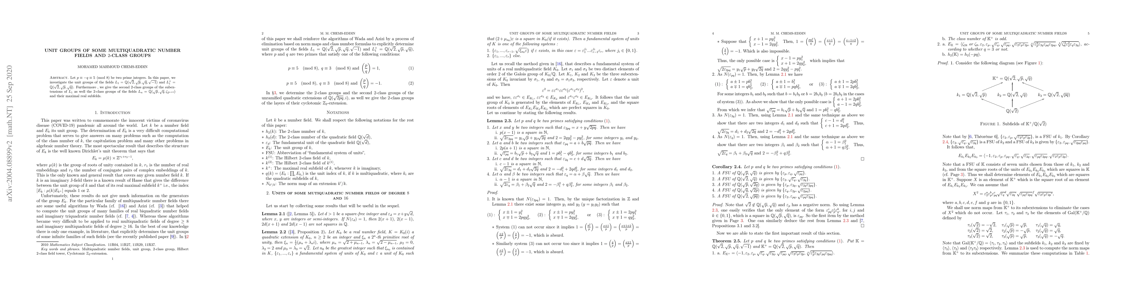 This paper investigates unit groups of multiquadratic number fields and 2-class groups, focusing on prime integers p≡ -q ≡ 5 (mod 8) and their relationships with subextensions and maximal real subfields.