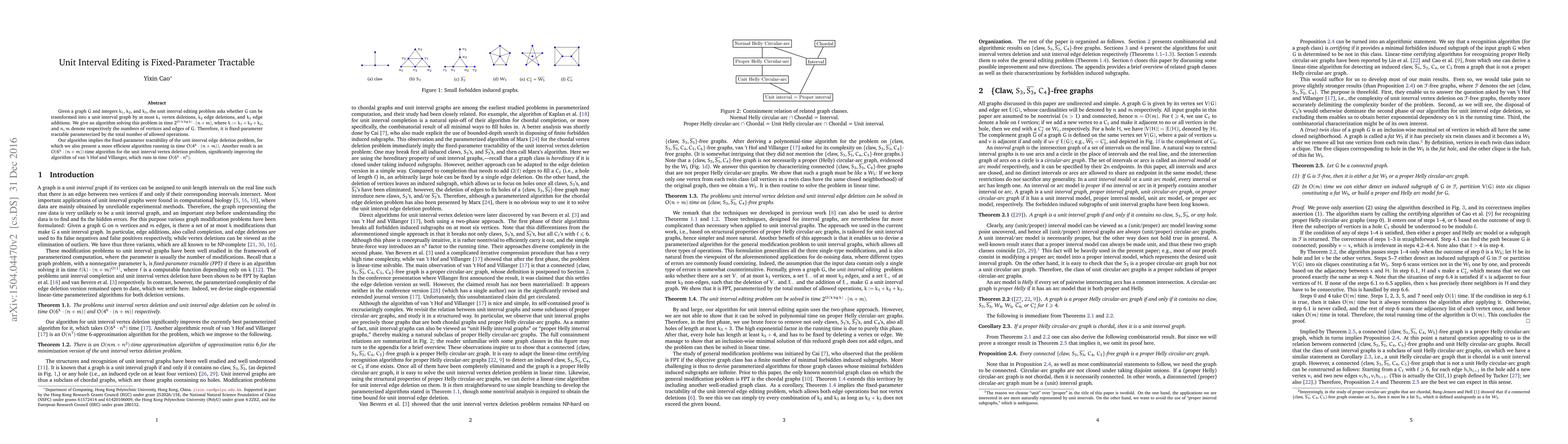 The paper presents an algorithm that solves the unit interval editing problem in fixed-parameter tractable time, demonstrating that the problem can be solved efficiently when parameterized by the total number of allowed operations. It also provides more efficient algorithms for specific variants of the problem, including unit interval edge deletion and vertex deletion.