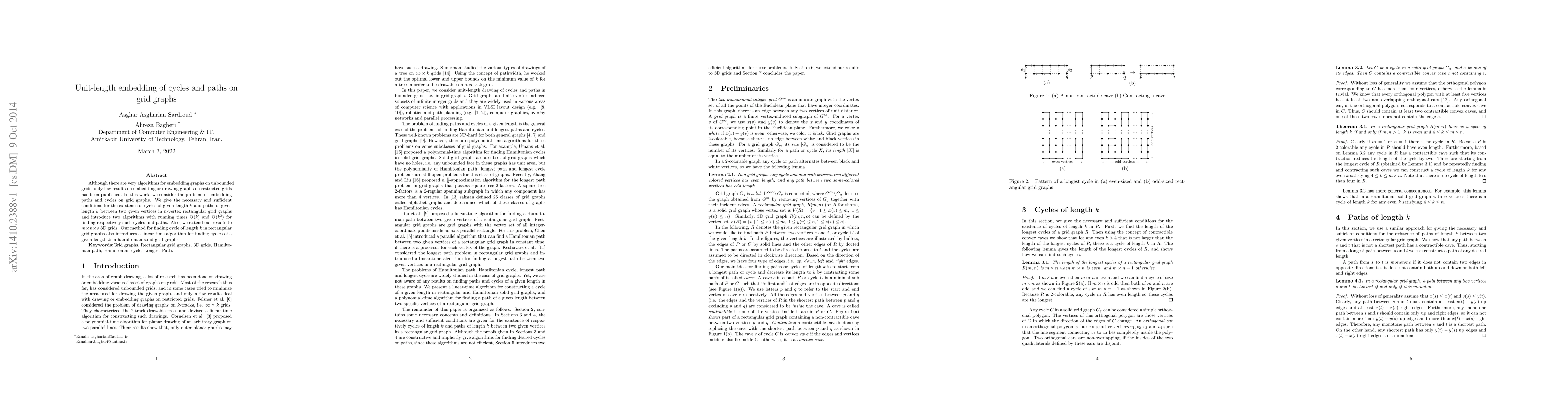 This paper presents necessary and sufficient conditions for embedding cycles and paths of specific lengths on rectangular grid graphs and introduces algorithms for finding such cycles and paths, with running times O(k) and O(k²). It also extends the findings to 3D grids and provides a linear-time algorithm for Hamiltonian solid grid graphs.