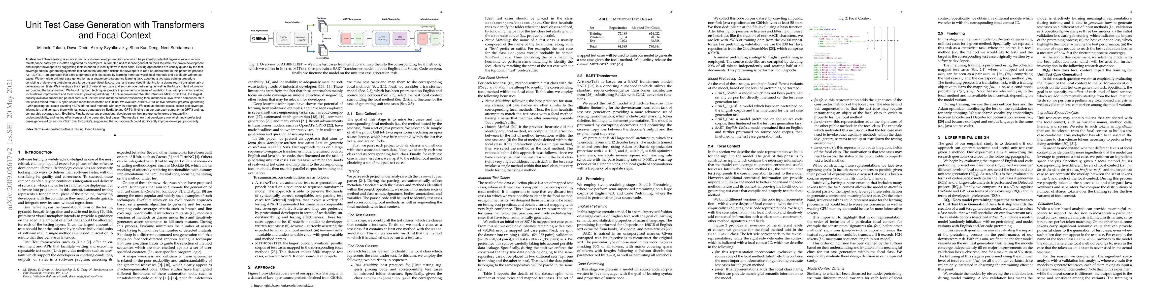 This paper proposes AthenaTest, a transformer-based approach for generating readable and effective unit test cases by learning from real-world focal methods and developer-written test cases. It outperforms GPT-3 and matches EvoSuite in test coverage while being preferred by developers for readability and understandability.