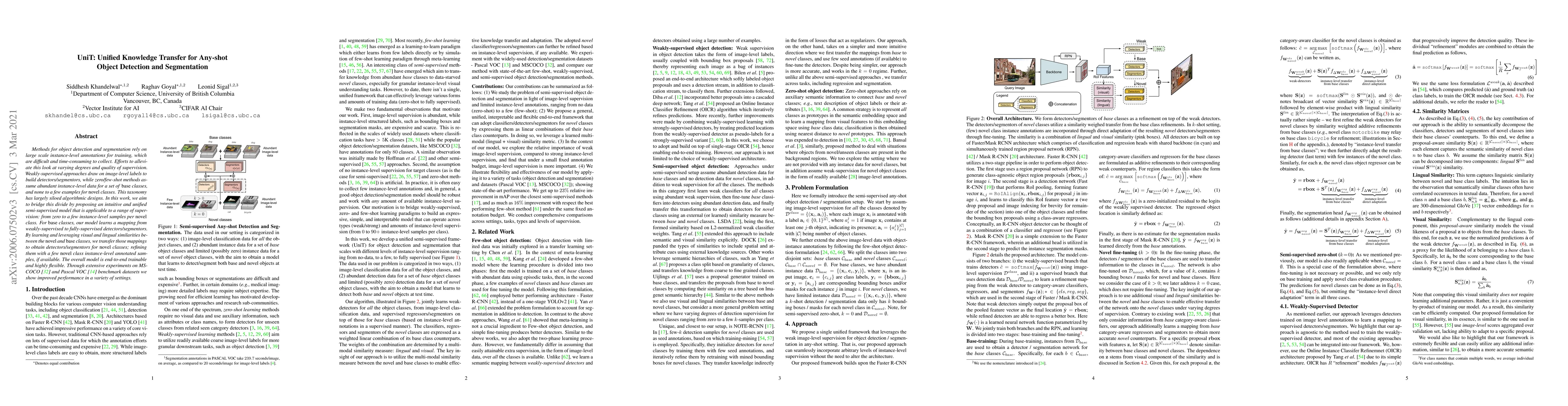 Researchers propose a unified semi-supervised model for object detection and segmentation that can handle a range of supervision levels from zero to few instance-level samples per novel class, achieving improved performance on MS-COCO and Pascal VOC datasets.