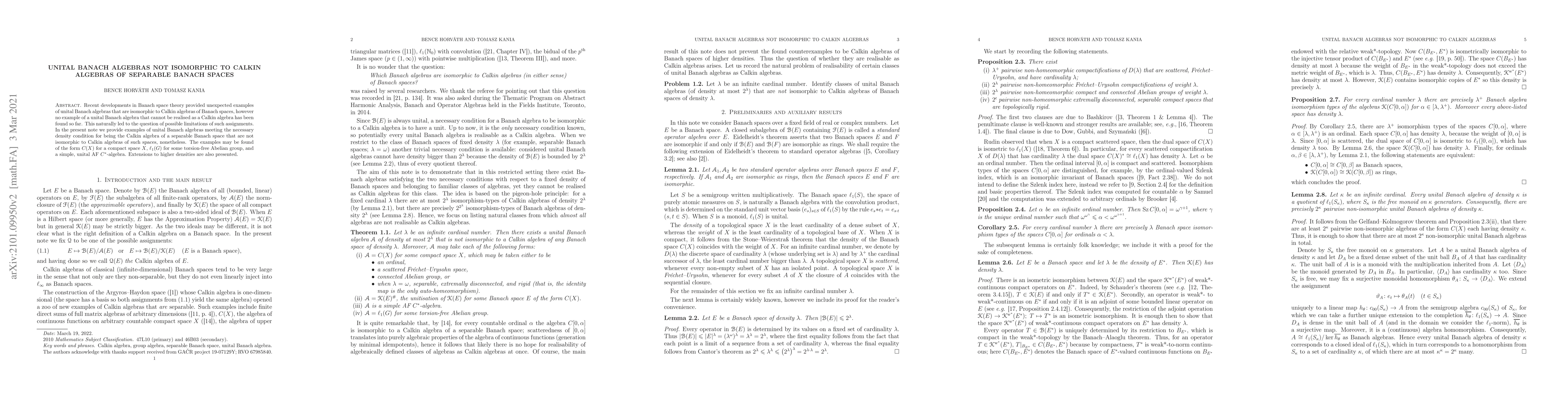 This paper presents examples of unital Banach algebras, including $C(X)$ for compact spaces $X$, $\ell_1(G)$ for torsion-free Abelian groups, and simple unital AF $C^*$-algebras, that meet the density condition for being Calkin algebras of separable Banach spaces but are not isomorphic to such Calkin algebras. Extensions to higher densities are also discussed.
