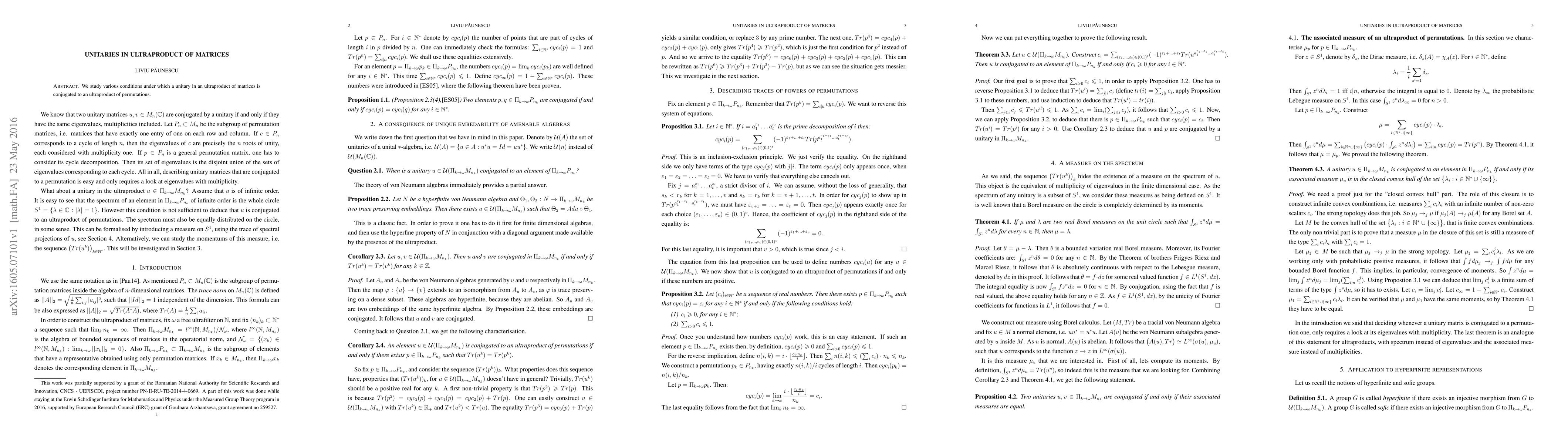Summary: This study investigates the conditions that allow a unitary matrix in an ultraproduct to be conjugated to an ultraproduct of permutations, exploring the structural properties and implications of such transformations.