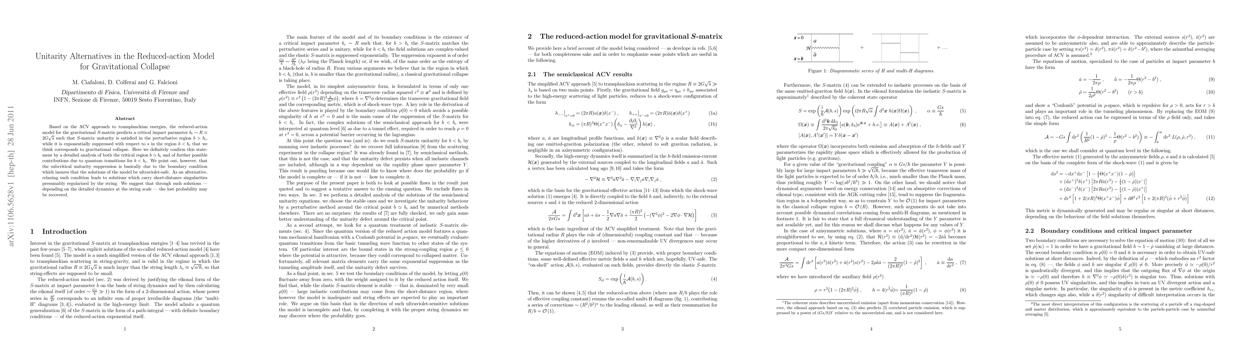 Based on the ACV approach to transplanckian energies, the reduced-action model for the gravitational S-matrix predicts a critical impact parameter b_c ~ R = 2 G sqrt{s} such that S-matrix unitarity is satisfied in the perturbative region b > b_c, while it is exponentially suppressed with respect to s in the region b < b_c that we think corresponds to gravitational collapse. Here we definitely confirm this statement by a detailed analysis of both the critical region b ~ b_c and of further possible contributions due to quantum transitions for b < b_c. We point out, however, that the subcritical unitarity suppression is basically due to the boundary condition which insures that the solutions of the model be ultraviolet-safe. As an alternative, relaxing such condition leads to solutions which carry short-distance singularities presumably regularized by the string. We suggest that through such solutions - depending on the detailed dynamics at the string scale - the lost probability may be recovered.