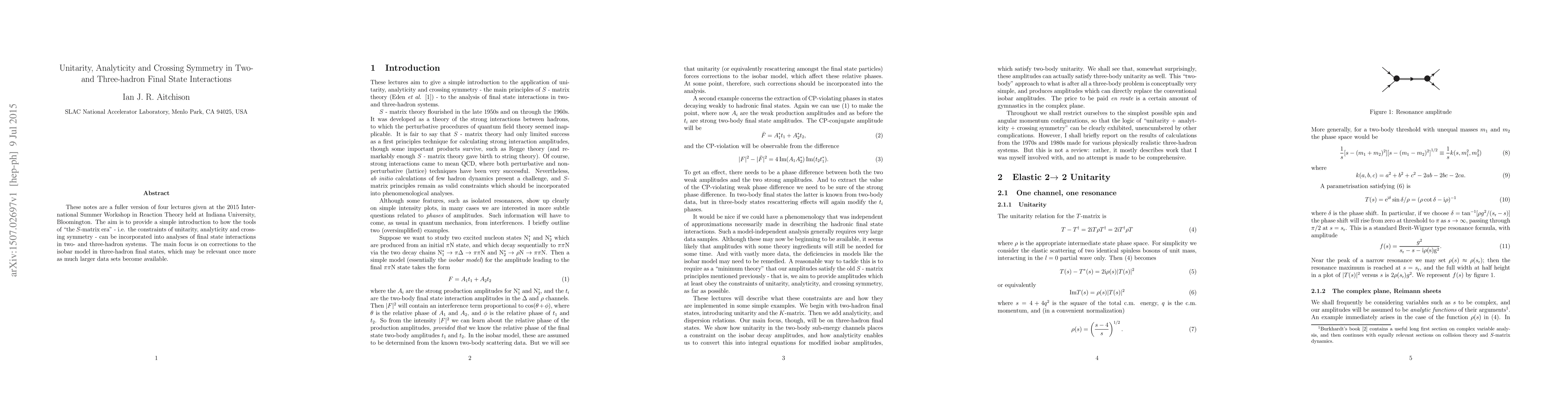 These notes are a fuller version of four lectures given at the 2015 International Summer Workshop in Reaction Theory held at Indiana University, Bloomington. The aim is to provide a simple introduction to how the tools of "the S-matrix era" - i.e. the constraints of unitarity, analyticity and crossing symmetry - can be incorporated into analyses of final state interactions in two- and three-hadron systems. The main focus is on corrections to the isobar model in three-hadron final states, which may be relevant once more as much larger data sets become available.
