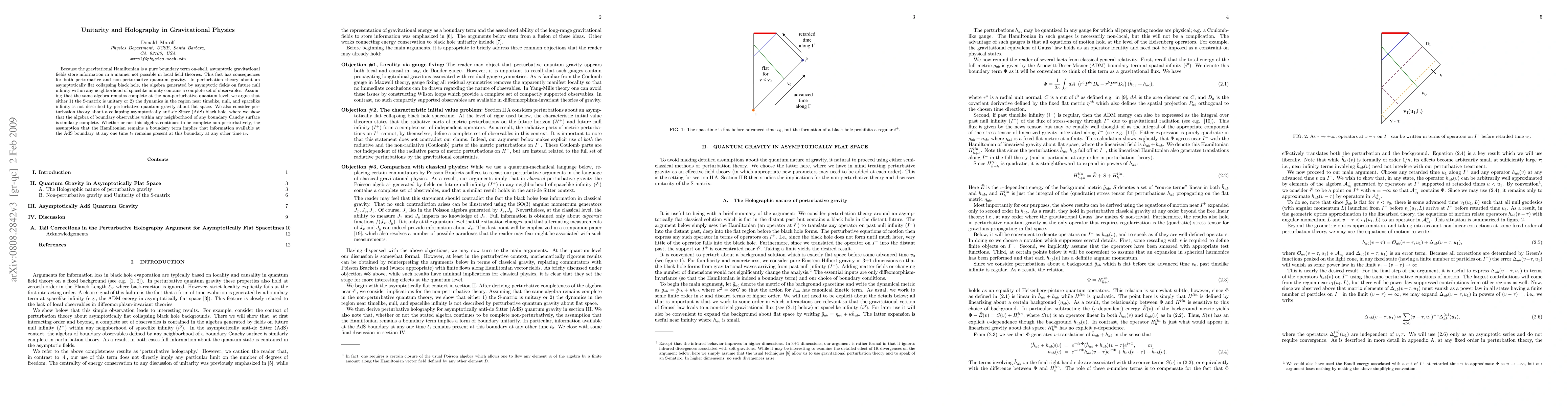 Because the gravitational Hamiltonian is a pure boundary term on-shell, asymptotic gravitational fields store information in a manner not possible in local field theories. This fact has consequences for both perturbative and non-perturbative quantum gravity. In perturbation theory about an asymptotically flat collapsing black hole, the algebra generated by asymptotic fields on future null infinity within any neighborhood of spacelike infinity contains a complete set of observables. Assuming that the same algebra remains complete at the non-perturbative quantum level, we argue that either 1) the S-matrix is unitary or 2) the dynamics in the region near timelike, null, and spacelike infinity is not described by perturbative quantum gravity about flat space. We also consider perturbation theory about a collapsing asymptotically anti-de Sitter (AdS) black hole, where we show that the algebra of boundary observables within any neighborhood of any boundary Cauchy surface is similarly complete. Whether or not this algebra continues to be complete non-perturbatively, the assumption that the Hamiltonian remains a boundary term implies that information available at the AdS boundary at any one time t_1 remains present at this boundary at any other time t_2.