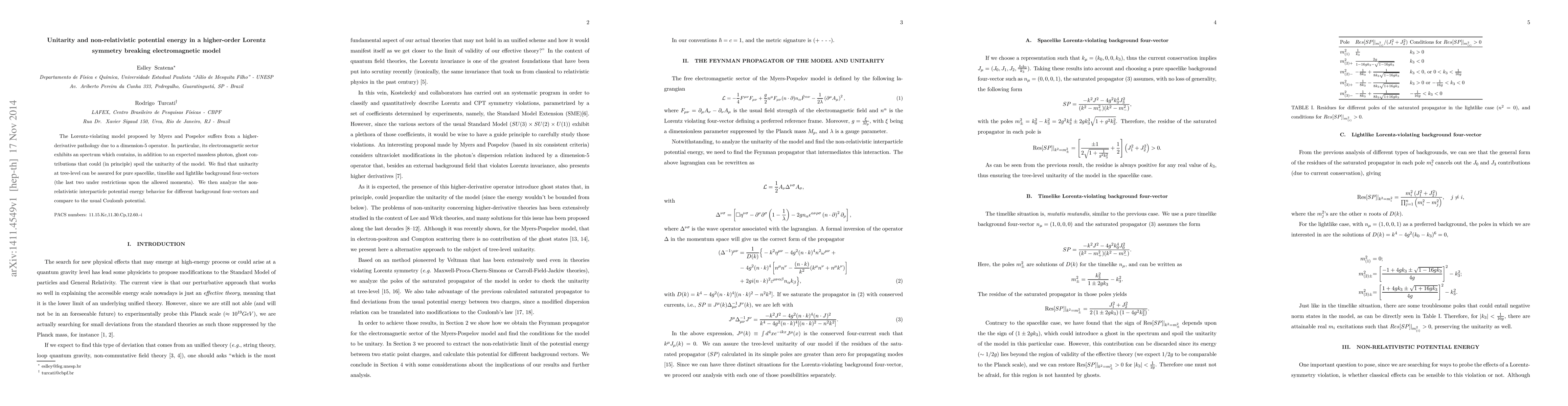The Lorentz-violating model proposed by Myers and Pospelov suffers from a higher-derivative pathology due to a dimension-5 operator. In particular, its electromagnetic sector exhibits an spectrum which contains, in addition to an expected massless photon, ghost contributions that could (in principle) spoil the unitarity of the model. We find that unitarity at tree-level can be assured for pure spacelike, timelike and lightlike background four-vectors (the last two under restrictions upon the allowed momenta). We then analyze the non-relativistic interparticle potential energy behavior for different background four-vectors and compare to the usual Coulomb potential.