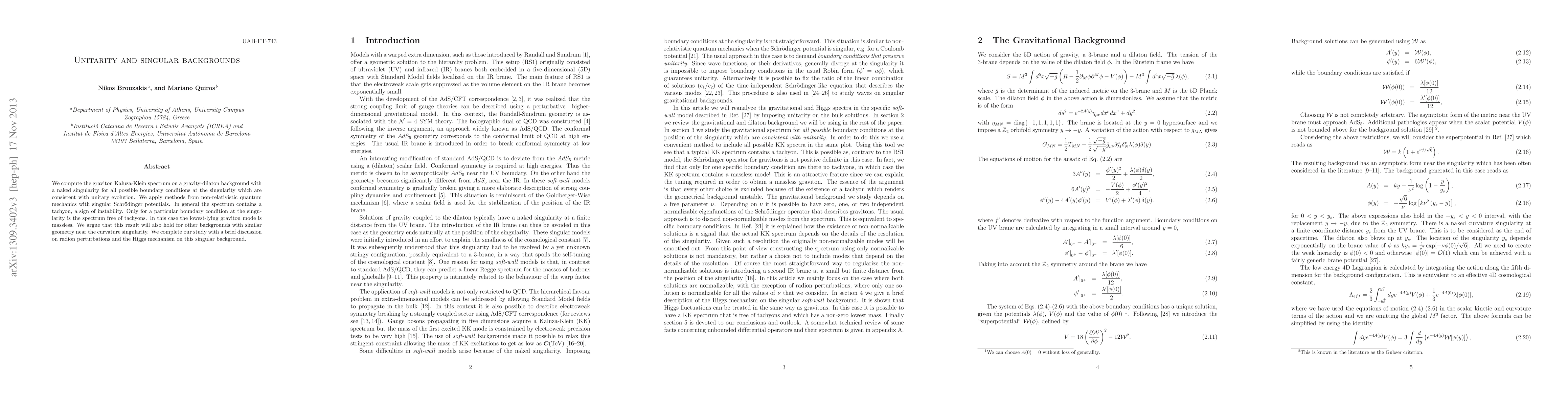 We compute the graviton Kaluza-Klein spectrum on a gravity-dilaton background with a naked singularity for all possible boundary conditions at the singularity which are consistent with unitary evolution. We apply methods from non-relativistic quantum mechanics with singular Schr\"{o}dinger potentials. In general the spectrum contains a tachyon, a sign of instability. Only for a particular boundary condition at the singularity is the spectrum free of tachyons. In this case the lowest-lying graviton mode is massless. We argue that this result will also hold for other backgrounds with similar geometry near the curvature singularity. We complete our study with a brief discussion on radion perturbations and the Higgs mechanism on this singular background.