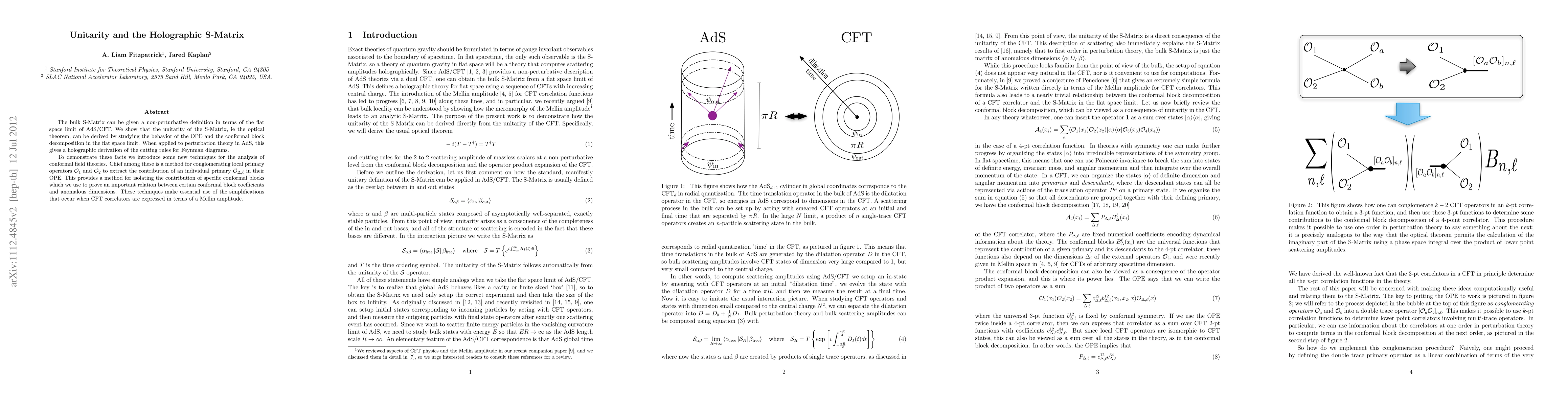 The bulk S-Matrix can be given a non-perturbative definition in terms of the flat space limit of AdS/CFT. We show that the unitarity of the S-Matrix, ie the optical theorem, can be derived by studying the behavior of the OPE and the conformal block decomposition in the flat space limit. When applied to perturbation theory in AdS, this gives a holographic derivation of the cutting rules for Feynman diagrams. To demonstrate these facts we introduce some new techniques for the analysis of conformal field theories. Chief among these is a method for conglomerating local primary operators to extract the contribution of an individual primary in their OPE. This provides a method for isolating the contribution of specific conformal blocks which we use to prove an important relation between certain conformal block coefficients and anomalous dimensions. These techniques make essential use of the simplifications that occur when CFT correlators are expressed in terms of a Mellin amplitude.