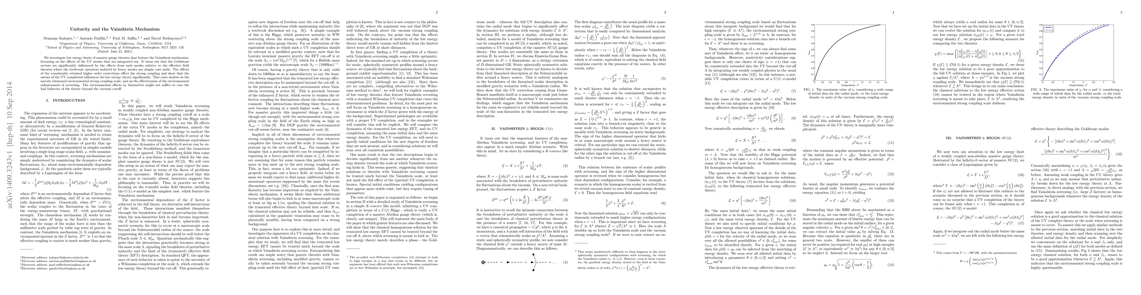 We investigate low energy limits of massive gauge theories that feature the Vainshtein mechanism, focussing on the effects of the UV modes that are integrated out. It turns out that the Goldstone sectors are significantly influenced by the effects from such modes relative to the effective field theories where the irrelevant operators induced by heavy modes are simply cast aside. The effects of the consistently retained higher order corrections affect the strong coupling and show that the nature of the UV completion influences the low energy theory significantly. This casts doubts on the naively estimated environmental strong coupling scale, and on the effectiveness of the environmental enhancement of screening. The environmental effects by themselves might not suffice to cure the bad behavior of the theory beyond the vacuum cutoff.