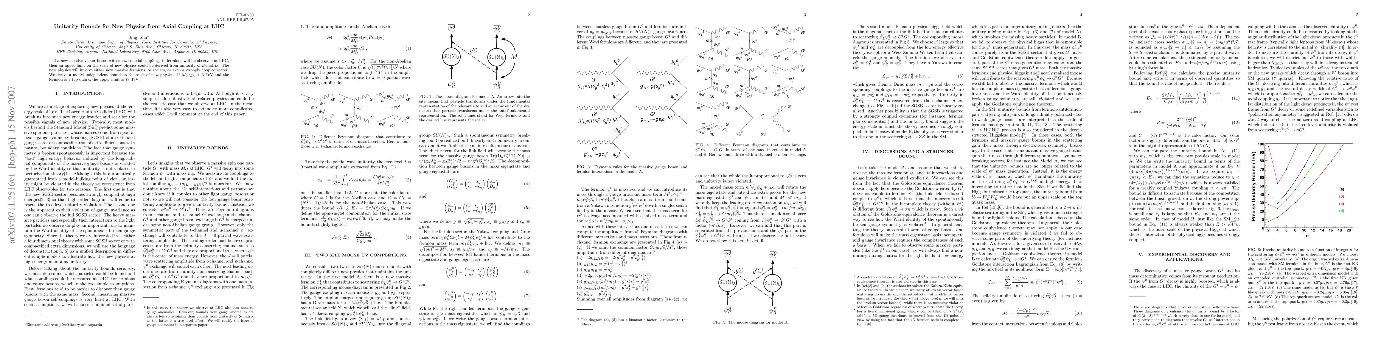 If a new massive vector boson with nonzero axial couplings to fermions will be observed at LHC, then an upper limit on the scale of new physics could be derived from unitarity of $\mathcal{S}$-matrix. The new physics will involve either new massive fermions, or scalars, or even a strongly coupled sector. We derive a model independent bound on the scale of new physics. If $M_{G}/ g_{A} < 3$ TeV and the fermion is a top quark, the upper limit is 78 TeV.
