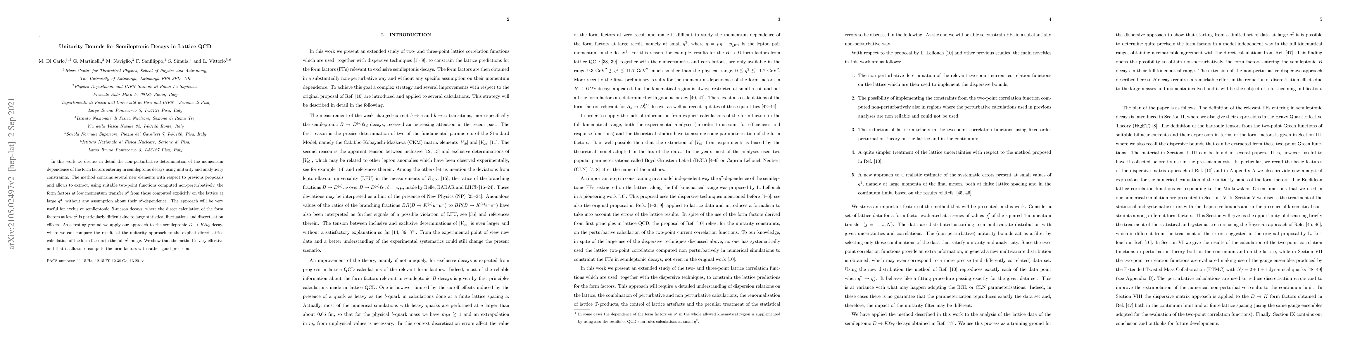 This paper presents a novel non-perturbative method for determining the momentum dependence of form factors in semileptonic decays using unitarity and analyticity constraints, enabling the extraction of form factors at low momentum transfer without assumptions about their $q^2$-dependence. The method is tested on the $D \to K \ell \nu_\ell$ decay, showing good precision and effectiveness.