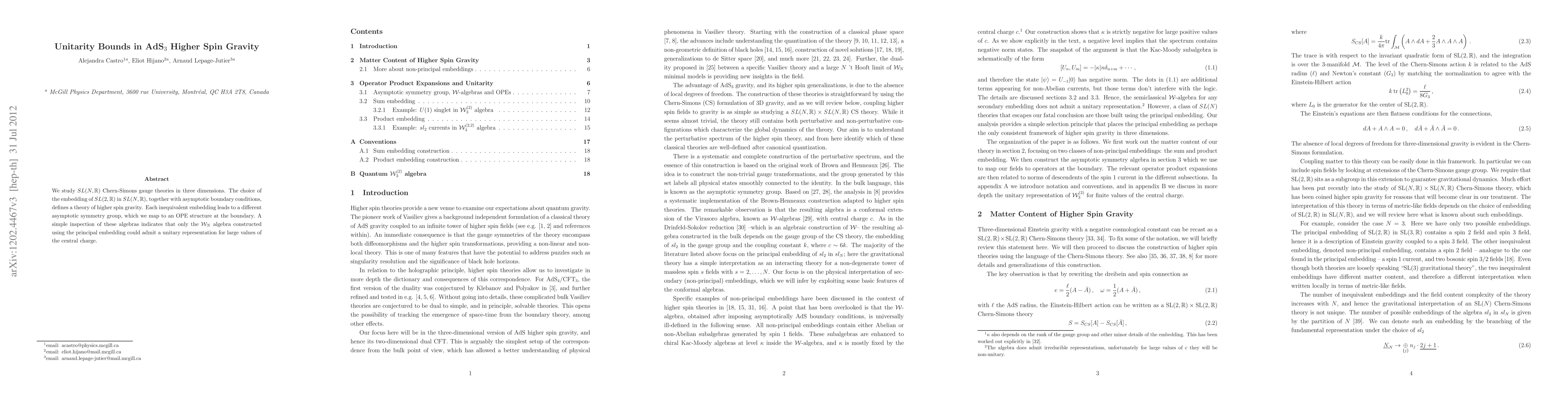 We study SL(N,R) Chern-Simons gauge theories in three dimensions. The choice of the embedding of SL(2,R) in SL(N,R), together with asymptotic boundary conditions, defines a theory of higher spin gravity. Each inequivalent embedding leads to a different asymptotic symmetry group, which we map to an OPE structure at the boundary. A simple inspection of these algebras indicates that only the W_N algebra constructed using the principal embedding could admit a unitary representation for large values of the central charge.
