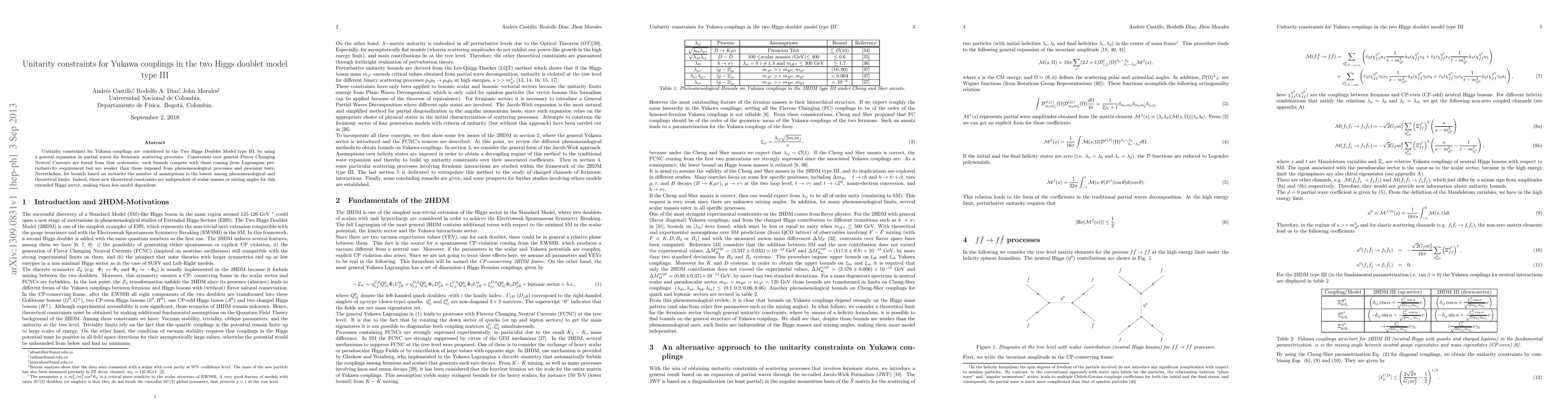 This paper investigates unitarity constraints on Yukawa couplings in the Two Higgs Doublet Model type III, employing a partial wave expansion for fermion scattering. It finds that these constraints are weaker than those from phenomenological processes but are the least assumption-dependent, independent of scalar masses or mixing angles.