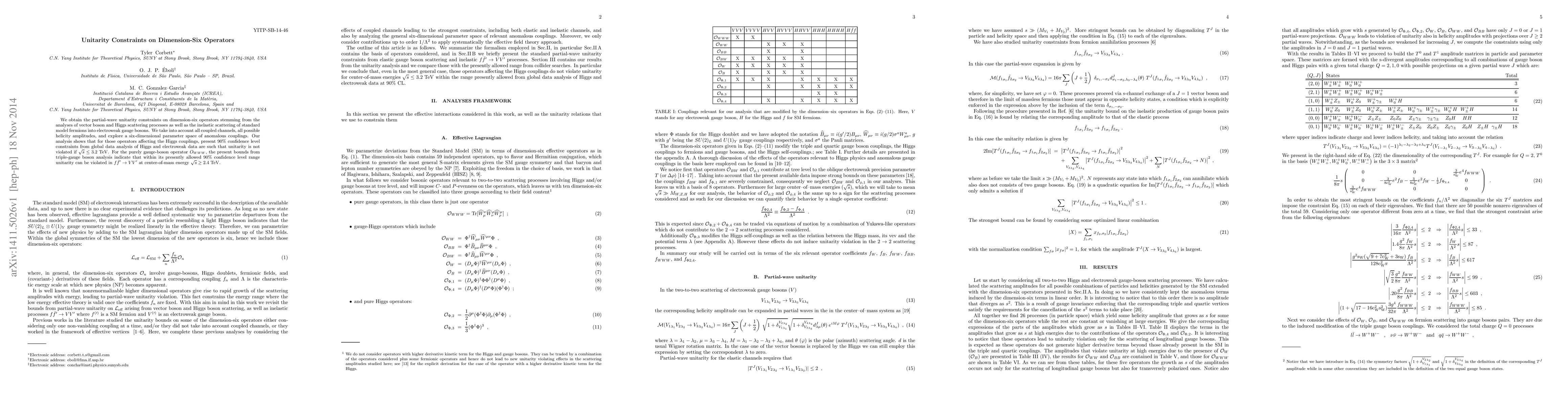 We obtain the partial-wave unitarity constraints on dimension-six operators stemming from the analyses of vector boson and Higgs scattering processes as well as the inelastic scattering of standard model fermions into electroweak gauge bosons. We take into account all coupled channels, all possible helicity amplitudes, and explore a six-dimensional parameter space of anomalous couplings. Our analysis shows that for those operators affecting the Higgs couplings, present 90% confidence level constraints from global data analysis of Higgs and electroweak data are such that unitarity is not violated if $\sqrt{s}\leq 3.2\;{\rm TeV}$. For the purely gauge-boson operator $O_{WWW}$, the present bounds from triple-gauge boson analysis indicate that within its presently allowed 90% confidence level range unitarity can be violated in $f\bar f' \to V V'$ at center-of-mass energy $\sqrt{s}\geq 2.4\;{\rm TeV}$.