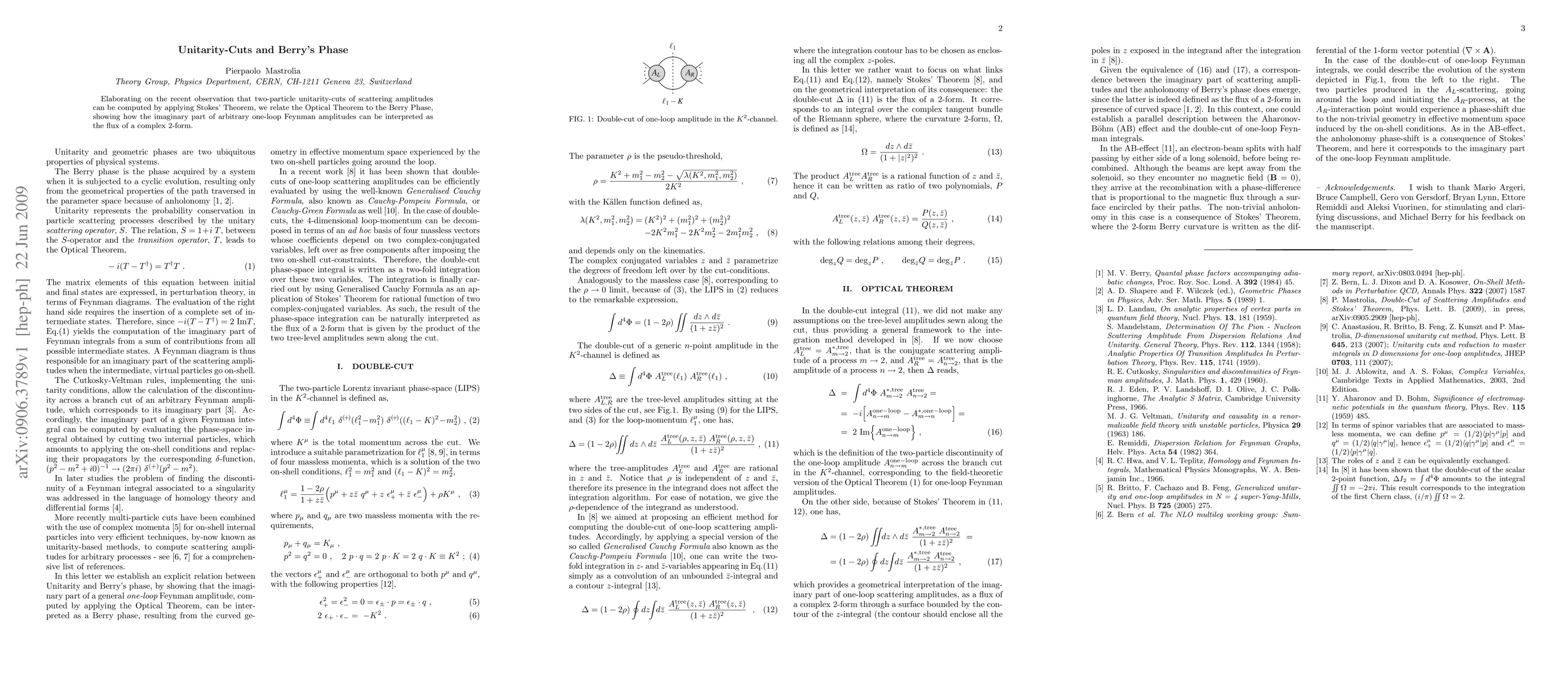 This paper demonstrates that two-particle unitarity-cuts can be derived using Stokes' Theorem, linking the Optical Theorem to the Berry Phase and interpreting the imaginary part of one-loop Feynman amplitudes as the flux of a complex 2-form.