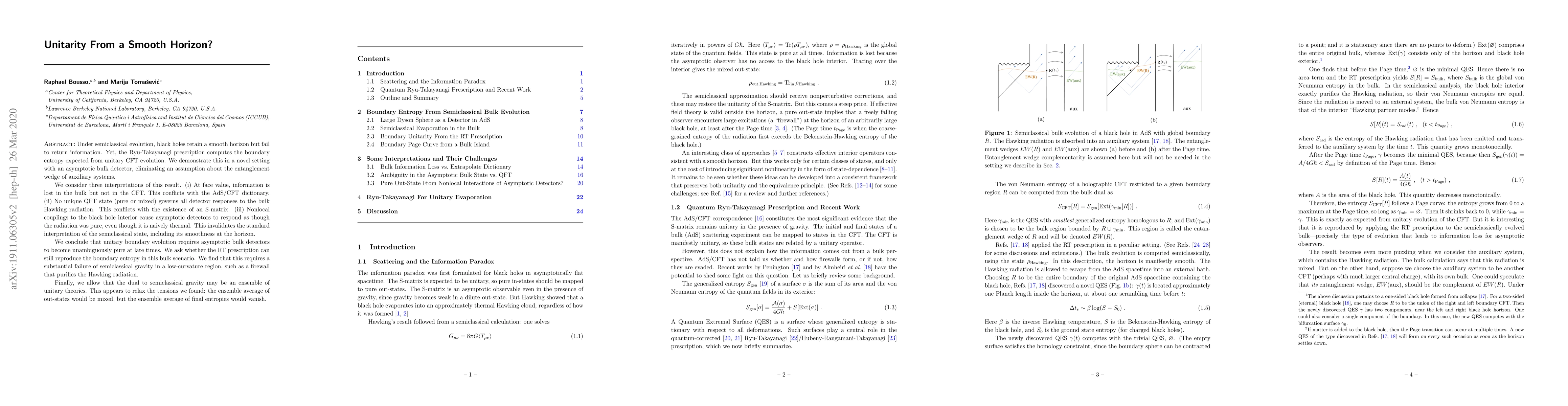 This paper explores how semiclassical black holes with smooth horizons may still adhere to unitarity in the context of the Ryu-Takayanagi entropy prescription, suggesting that nonlocal couplings or a firewall may be necessary to reconcile these observations with standard interpretations of semiclassical gravity.