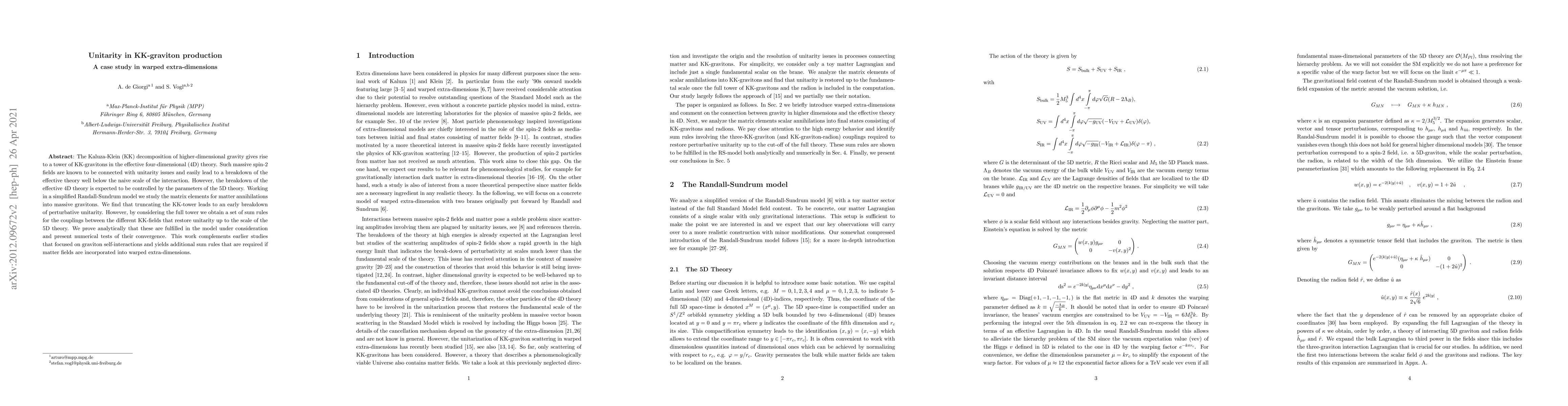 This paper investigates unitarity issues in the production of Kaluza-Klein (KK) gravitons within a simplified Randall-Sundrum model, finding that truncating the KK-graviton tower leads to a loss of perturbative unitarity. The study reveals that including the full KK-graviton tower restores unitarity up to the scale of the 5D theory, providing sum rules for the couplings between KK-fields that analytically and numerically uphold this restoration.