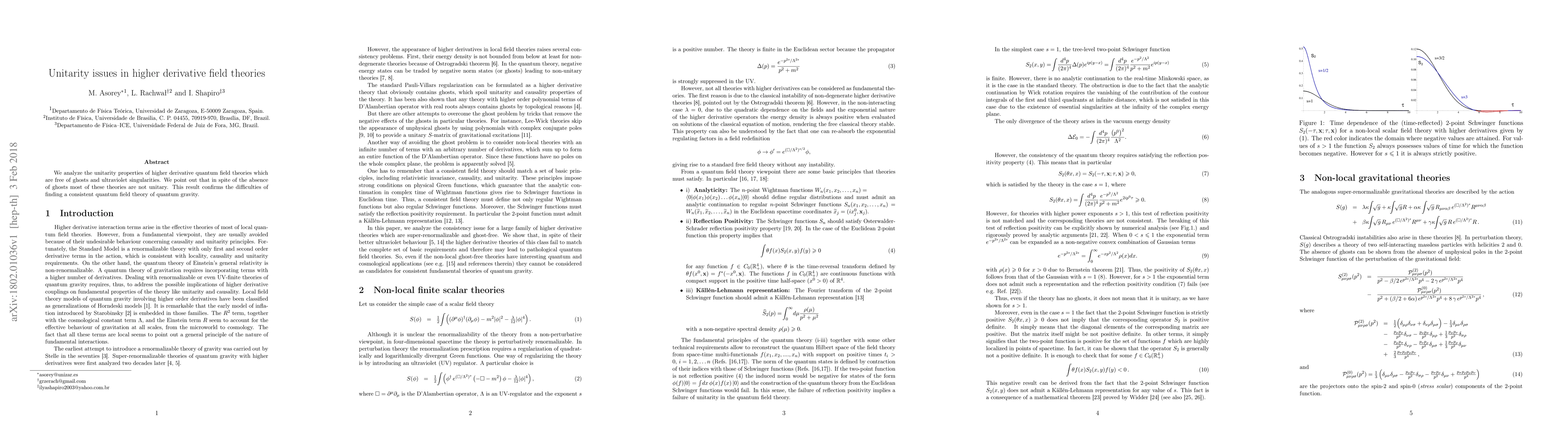 We analyze the unitarity properties of higher derivative quantum field theories which are free of ghosts and ultraviolet singularities. We point out that in spite of the absence of ghosts most of these theories are not unitary. This result confirms the difficulties of finding a consistent quantum field theory of quantum gravity.