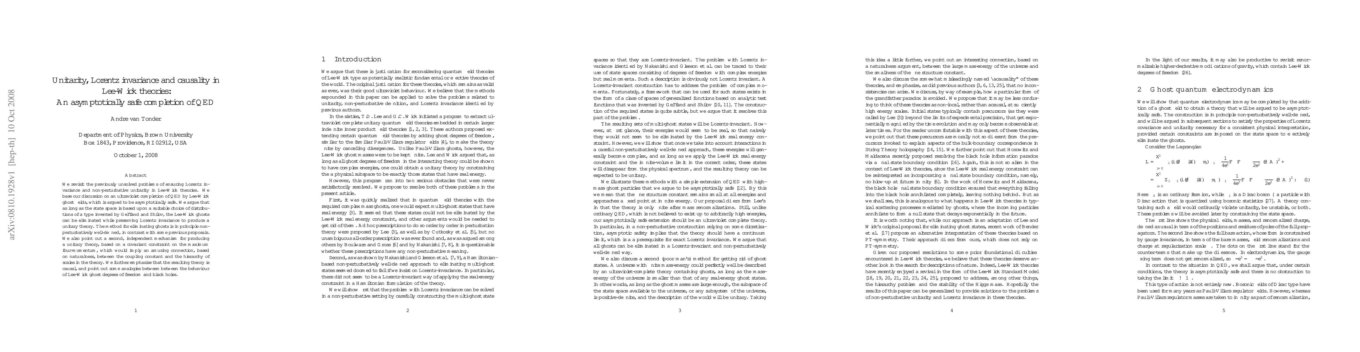 This paper addresses the challenges of Lorentz invariance and non-perturbative unitarity in Lee-Wick theories, proposing an asymptotically safe completion of QED using Lee-Wick ghost fields. It demonstrates a method for eliminating ghosts to maintain unitarity and causality, highlighting a connection between the coupling constant and the hierarchy of scales.