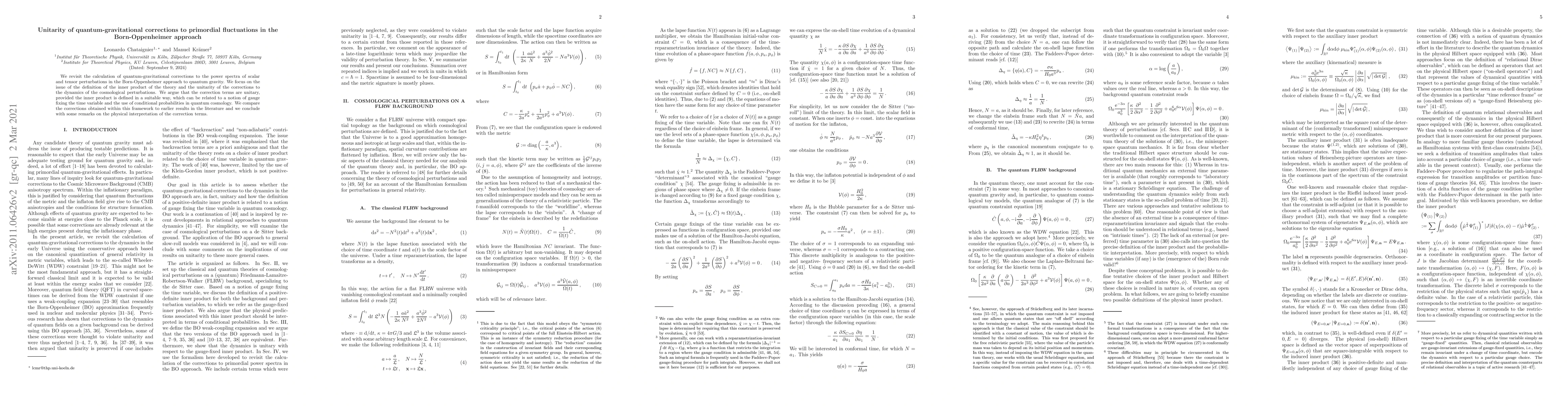 This paper examines quantum-gravitational corrections to primordial fluctuations using the Born-Oppenheimer approach, emphasizing the unitarity of these corrections. It argues that the corrections are unitary when the inner product is suitably defined, involving gauge-fixing and conditional probabilities.