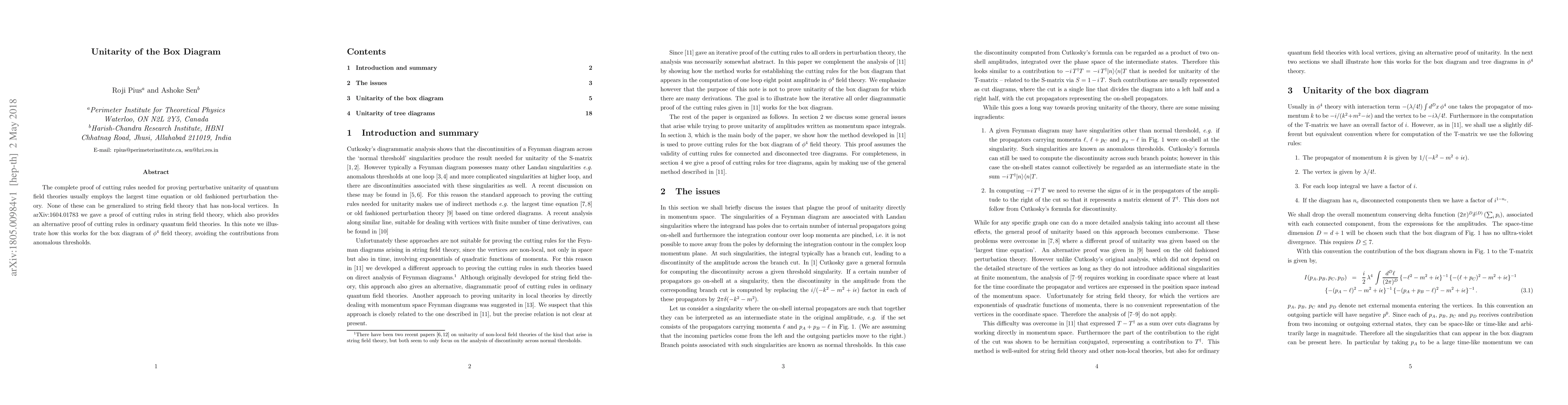 The complete proof of cutting rules needed for proving perturbative unitarity of quantum field theories usually employs the largest time equation or old fashioned perturbation theory. None of these can be generalized to string field theory that has non-local vertices. In arXiv:1604.01783 we gave a proof of cutting rules in string field theory, which also provides an alternative proof of cutting rules in ordinary quantum field theories. In this note we illustrate how this works for the box diagram of $\phi^4$ field theory, avoiding the contributions from anomalous thresholds.