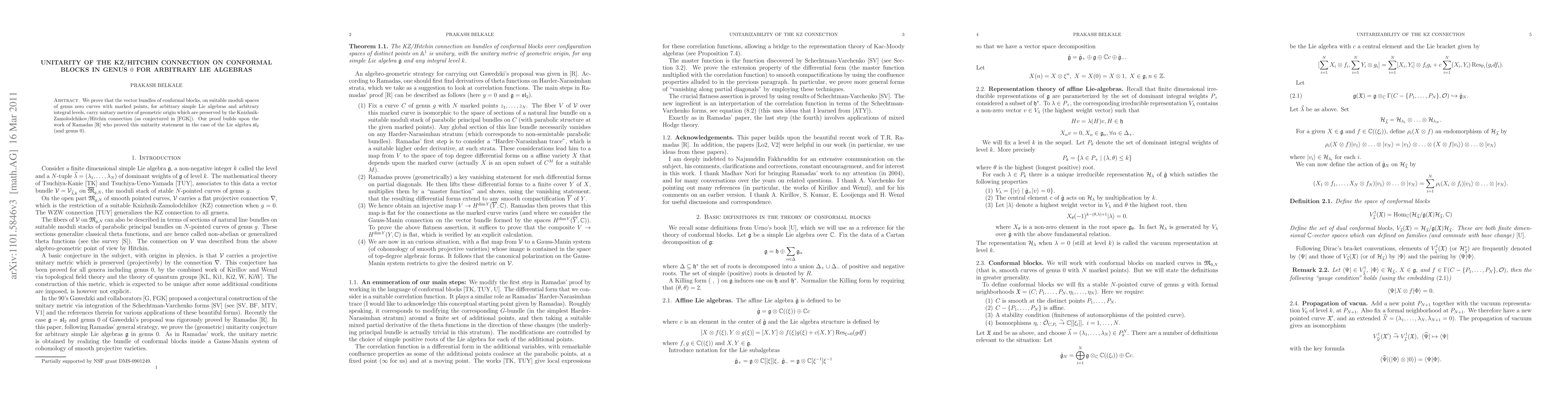 This paper proves the existence of unitary metrics on conformal blocks for arbitrary simple Lie algebras and integral levels, preserved by the Knizhnik-Zamolodchikov/Hitchin connection, extending Ramadas's work for sl(2) to all Lie algebras. This complements earlier genus-independent proofs by Kirillov and Wenzl.