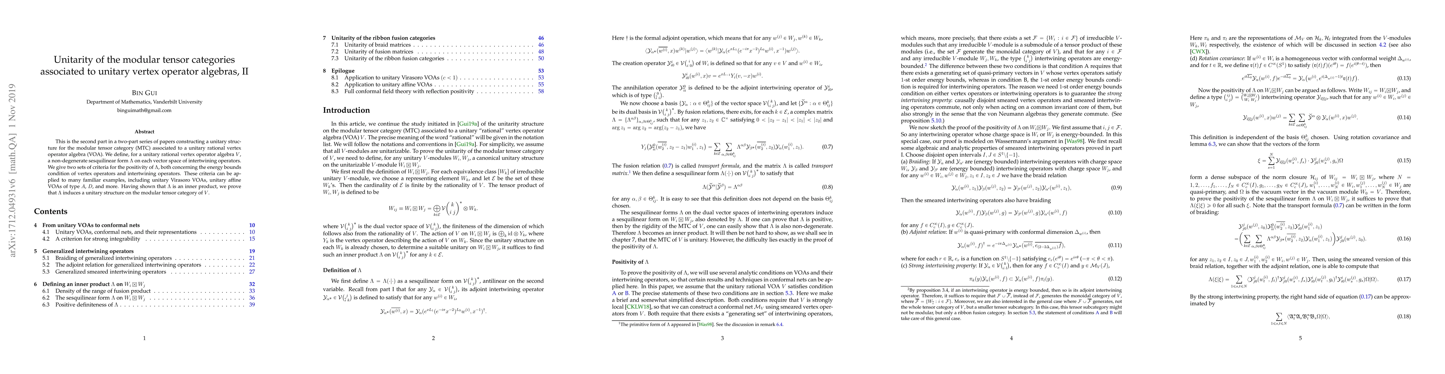 Summary: This research paper investigates the unitarity of modular tensor categories connected to unitary vertex operator algebras, focusing on their structural properties and implications in the second part of a two-part series. It builds on the foundational work established in the first part.
