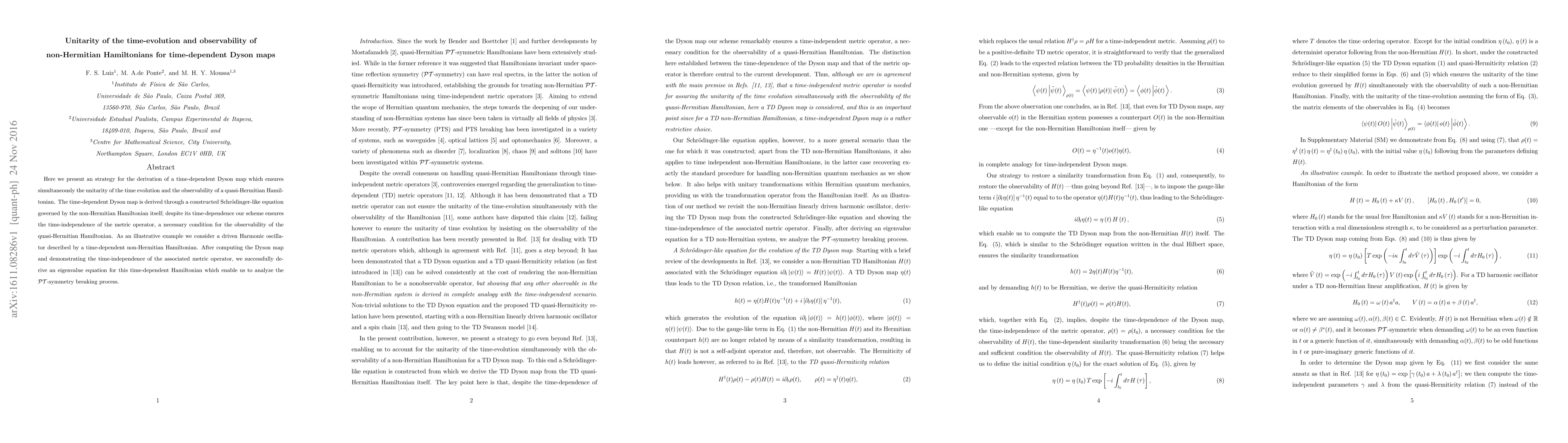 This paper proposes a method to derive a time-dependent Dyson map that maintains unitarity in time evolution and ensures observability of quasi-Hermitian Hamiltonians, illustrated with a driven Harmonic oscillator. The scheme guarantees the time-independence of the metric operator, crucial for quasi-Hermitian Hamiltonian observability.