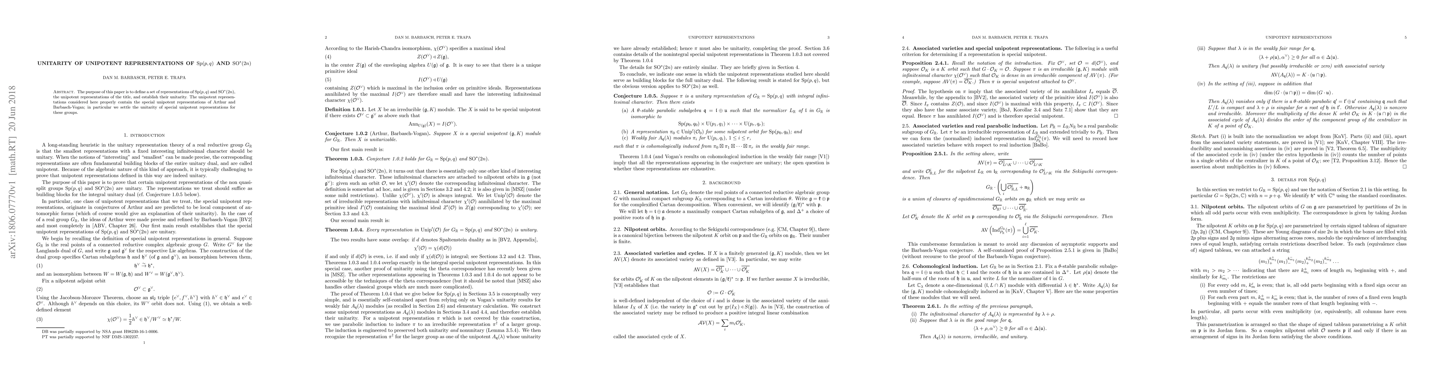 This paper defines and establishes the unitarity of unipotent representations for the symplectic group Sp(p,q) and the spin group SO*(2n), extending the work of Arthur and Barbasch-Vogan to include special unipotent representations. The results settle the unitarity of these special unipotent representations for these groups.