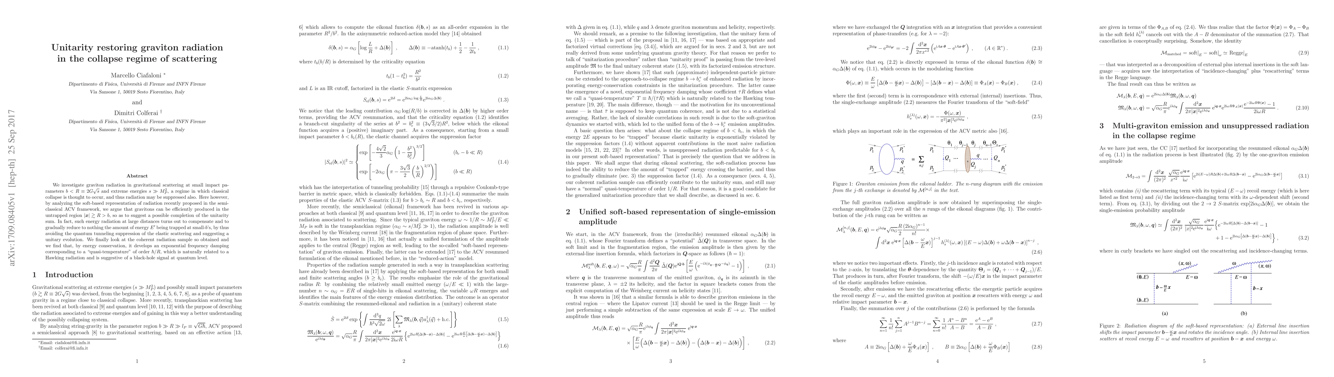 This research paper proposes that gravitons can efficiently produce radiation in a specific regime of gravitational scattering, potentially completing the unitarity sum and suggesting a possible black-hole signal at quantum level, with a 'quasi-temperature' similar to Hawking radiation.