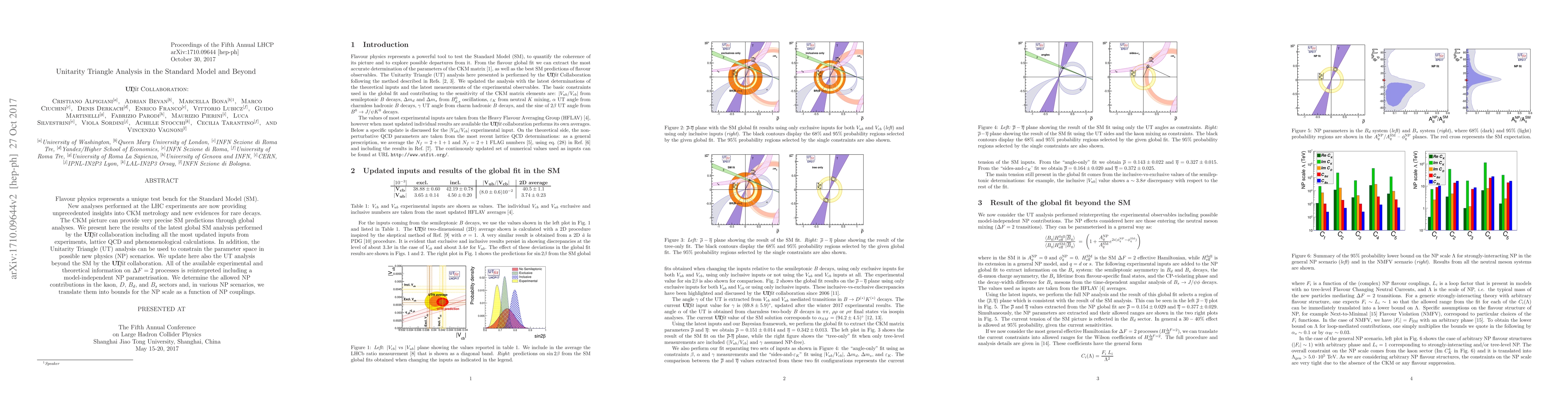 Flavour physics represents a unique test bench for the Standard Model (SM). New analyses performed at the LHC experiments are now providing unprecedented insights into CKM metrology and new evidences for rare decays. The CKM picture can provide very precise SM predictions through global analyses. We present here the results of the latest global SM analysis performed by the UTfit collaboration including all the most updated inputs from experiments, lattice QCD and phenomenological calculations. In addition, the Unitarity Triangle (UT) analysis can be used to constrain the parameter space in possible new physics (NP) scenarios. We update here also the UT analysis beyond the SM by the UTfit collaboration. All of the available experimental and theoretical information on $\Delta F=2$ processes is reinterpreted including a model-independent NP parametrisation. We determine the allowed NP contributions in the kaon, $D$, $B_d$, and $B_s$ sectors and, in various NP scenarios, we translate them into bounds for the NP scale as a function of NP couplings.