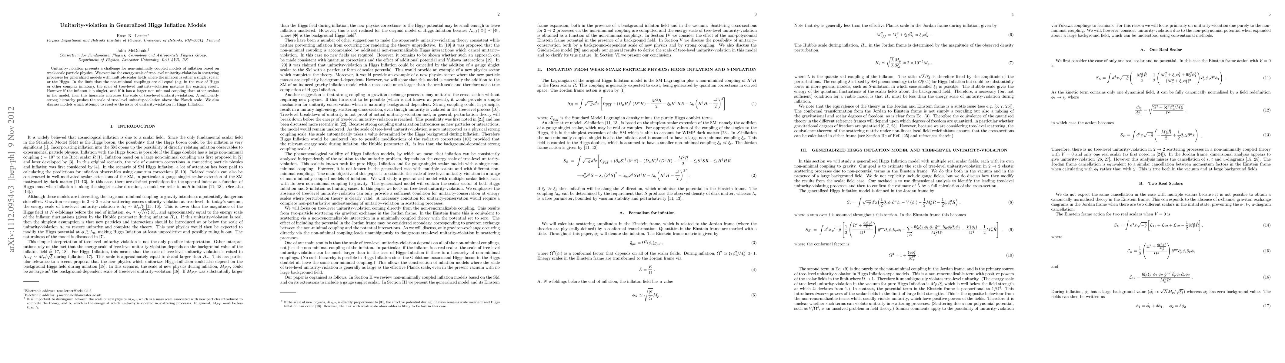 This paper investigates the energy scale at which unitarity is violated in generalized Higgs inflation models with multiple scalar fields. It finds that a sufficiently strong hierarchy in non-minimal couplings, especially in singlet inflatons, can push the violation scale above the Planck scale, while also discussing potential resolutions for unitarity issues in Higgs inflation.