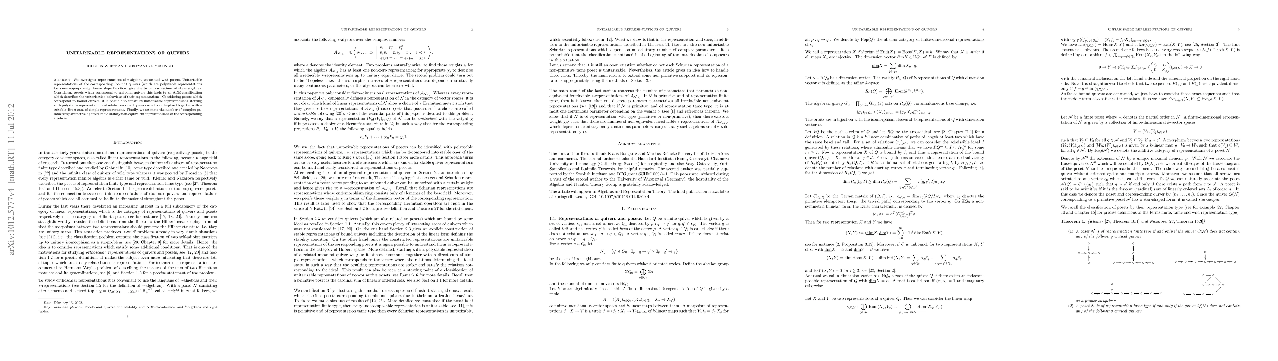 This paper explores representations of *-algebras linked to posets, focusing on unitarizable representations of bound and unbound quivers. It leads to an ADE-classification of unitarization behaviors and estimates the number of parameters for irreducible unitary representations of these algebras.