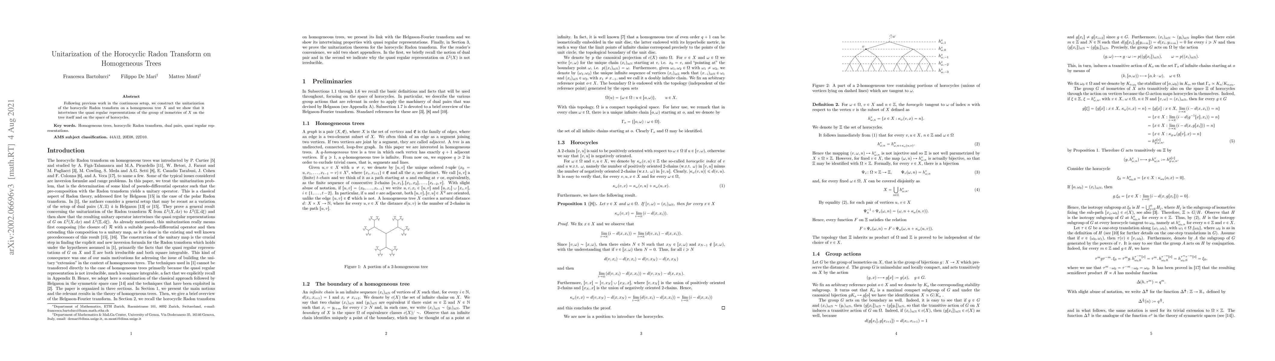 This paper constructs the unitarization of the horocyclic Radon transform on homogeneous trees, demonstrating its role in connecting the quasi-regular representations of the isometry group between the tree and the space of horocycles.