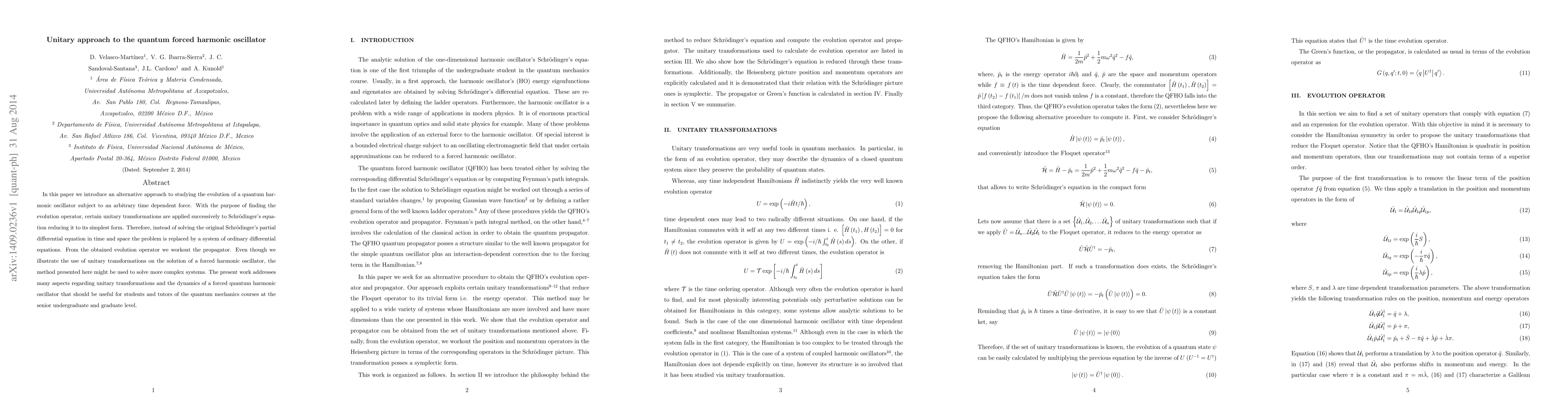 This paper proposes a unitary transformation approach to simplify the study of a quantum harmonic oscillator under an arbitrary time-dependent force, transforming the problem into a system of ordinary differential equations from the original partial differential equation. The method is demonstrated for a forced harmonic oscillator but may extend to more complex quantum systems.