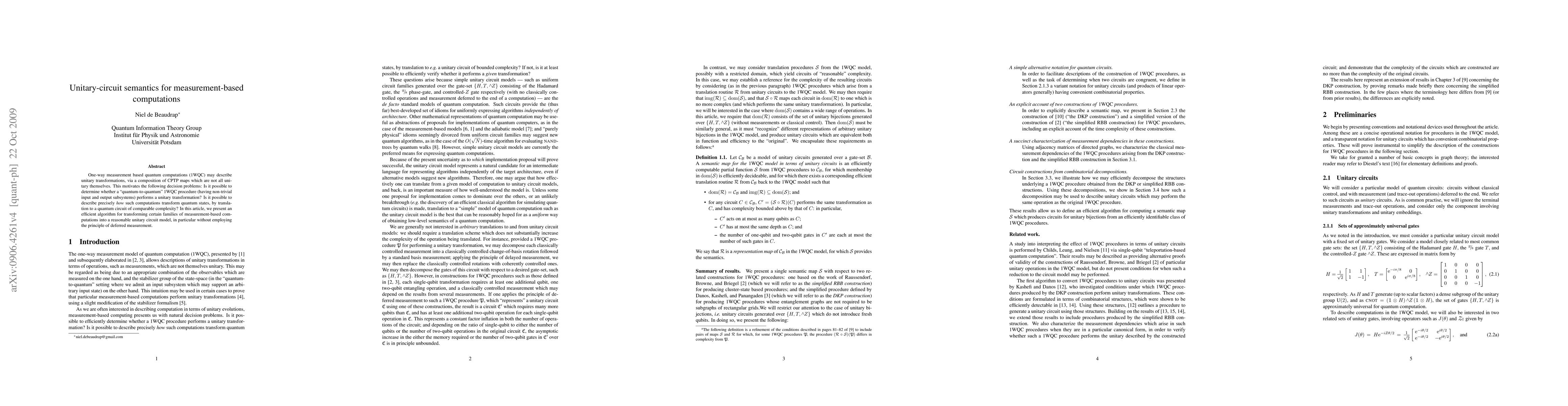 One-way measurement based quantum computations (1WQC) may describe unitary transformations, via a composition of CPTP maps which are not all unitary themselves. This motivates the following decision problems: Is it possible to determine whether a ``quantum-to-quantum'' 1WQC procedure (having non-trivial input and output subsystems) performs a unitary transformation? Is it possible to describe precisely how such computations transform quantum states, by translation to a quantum circuit of comparable complexity? In this article, we present an efficient algorithm for transforming certain families of measurement-based computations into a reasonable unitary circuit model, in particular without employing the principle of deferred measurement.