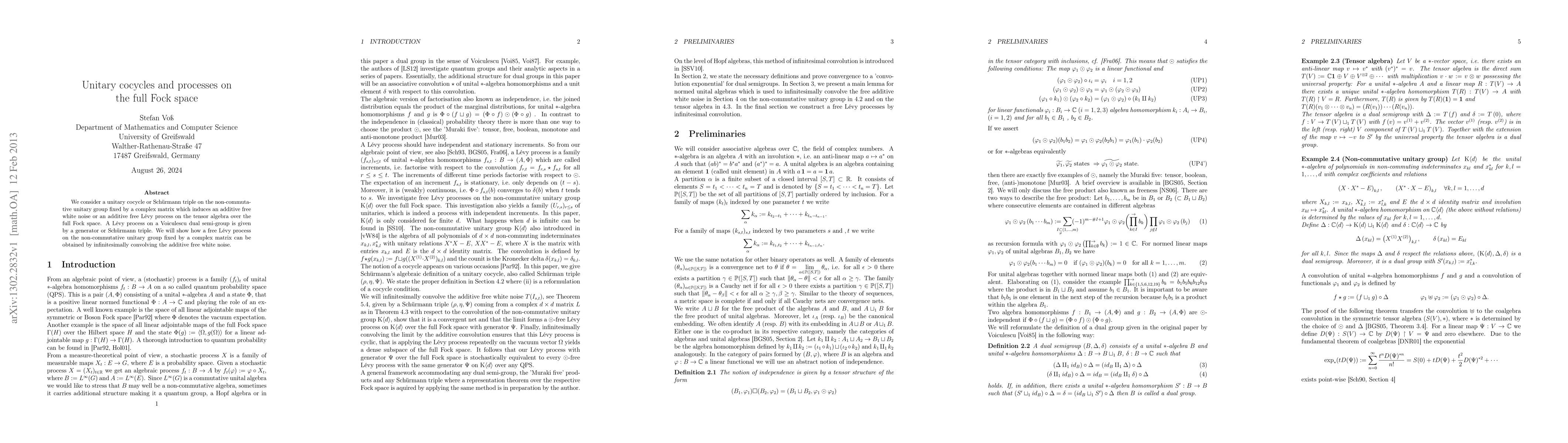 Researchers show that adding white noise to a non-commutative unitary group can create a free Lévy process on the full Fock space, providing new insights into the properties of such groups.