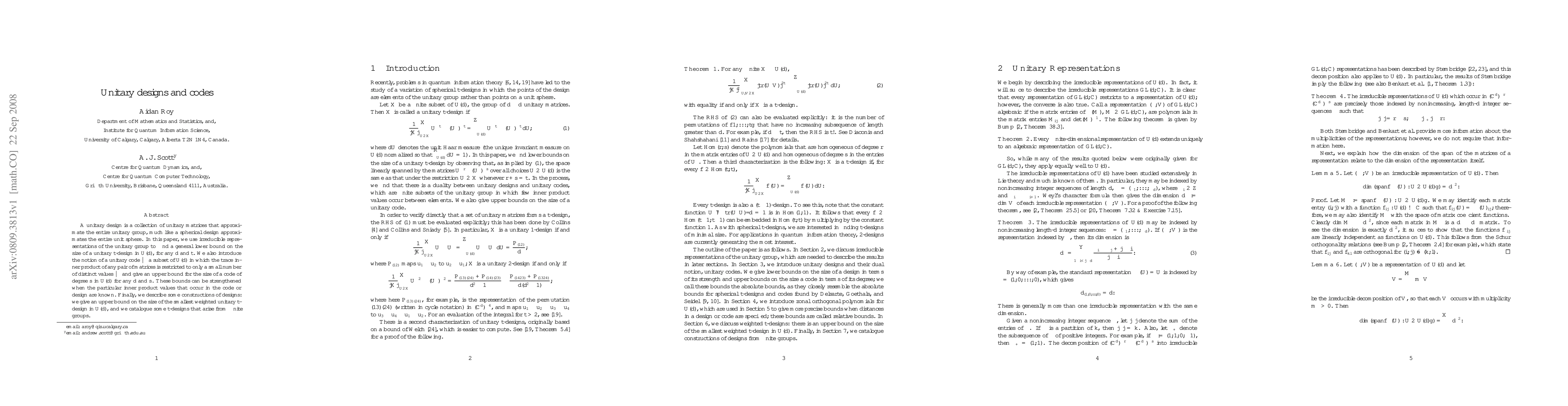 This paper investigates unitary designs, which approximate the entire unitary group, and establishes a lower bound for their size using irreducible representations. It also introduces unitary codes with restricted trace inner products and provides an upper bound on their size, with potential for stronger bounds based on known inner product values. The study concludes with constructions of these designs and catalogues designs from finite groups.