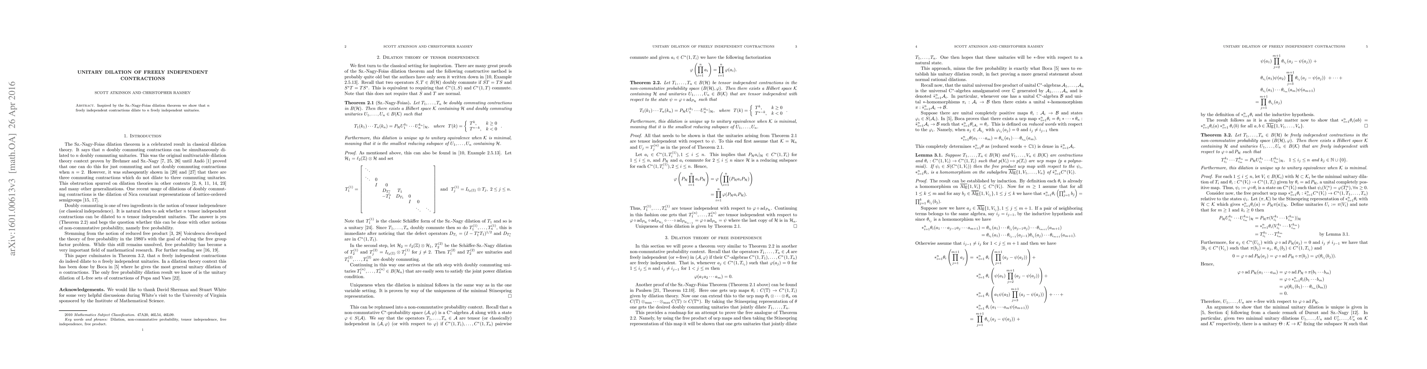 Researchers have shown that n freely independent contractions can dilate to n freely independent unitaries, a key finding with implications for quantum information theory.