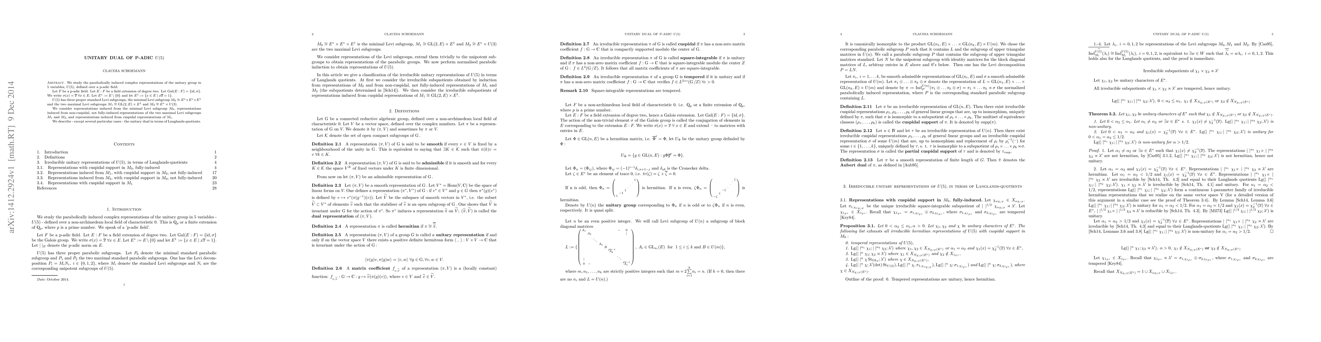The paper provides detailed analysis of the reducibility and unitarity conditions for specific classes of induced representations of $p$-adic $U(5)$, contributing to the classification of its unitary dual via Langlands-quotients.
