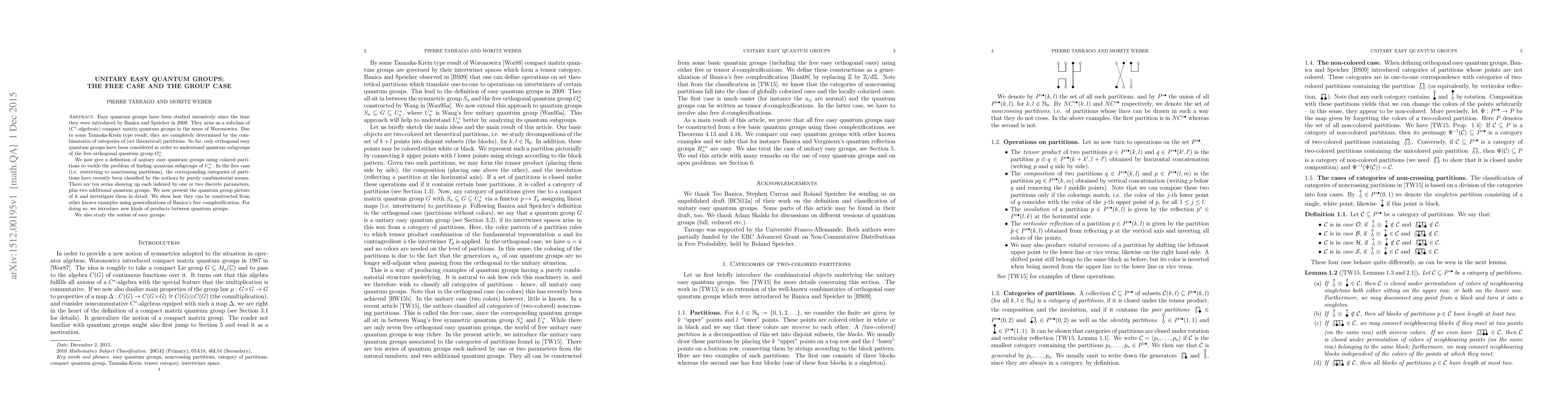 This paper defines unitary easy quantum groups using colored partitions to explore quantum subgroups of the unitary group $U_n^+$. It classifies the free case via noncrossing partitions and presents ten series of quantum groups, constructed using generalizations of Banica's free complexification, along with new products between quantum groups.