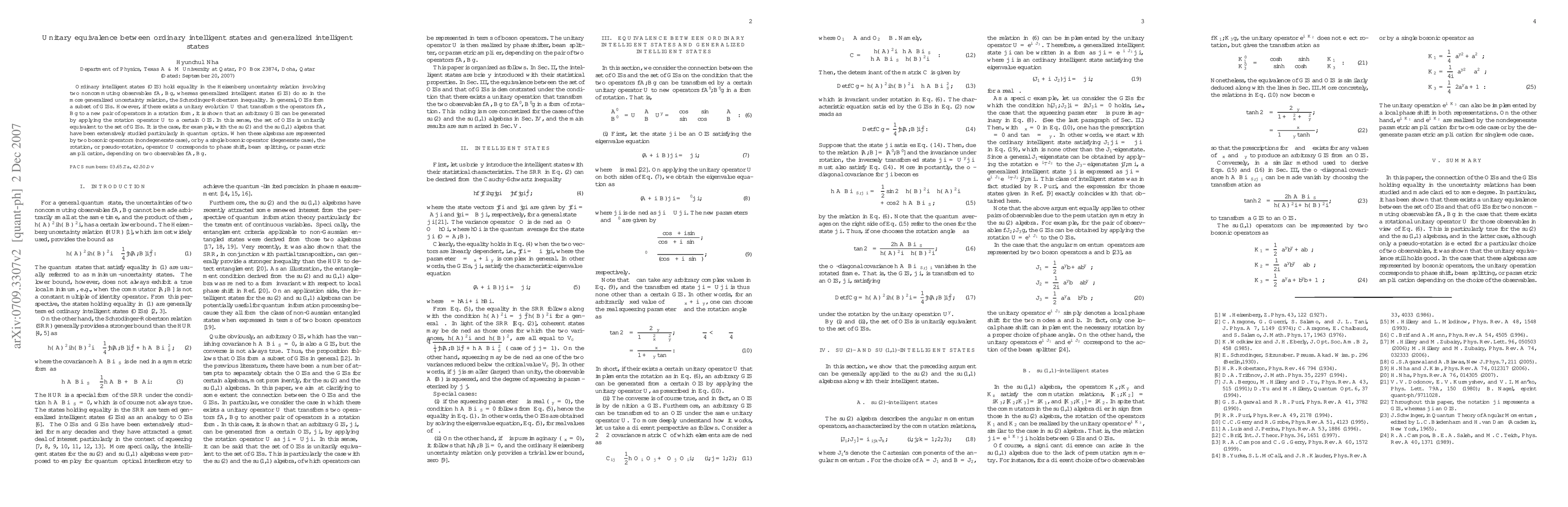 Ordinary intelligent states (OIS) hold equality in the Heisenberg uncertainty relation involving two noncommuting observables {A, B}, whereas generalized intelligent states (GIS) do so in the more generalized uncertainty relation, the Schrodinger-Robertson inequality. In general, OISs form a subset of GISs. However, if there exists a unitary evolution U that transforms the operators {A, B} to a new pair of operators in a rotation form, it is shown that an arbitrary GIS can be generated by applying the rotation operator U to a certain OIS. In this sense, the set of OISs is unitarily equivalent to the set of GISs. It is the case, for example, with the su(2) and the su(1,1) algebra that have been extensively studied particularly in quantum optics. When these algebras are represented by two bosonic operators (nondegenerate case), or by a single bosonic operator (degenerate case), the rotation, or pseudo-rotation, operator U corresponds to phase shift, beam splitting, or parametric amplification, depending on two observables {A, B}.