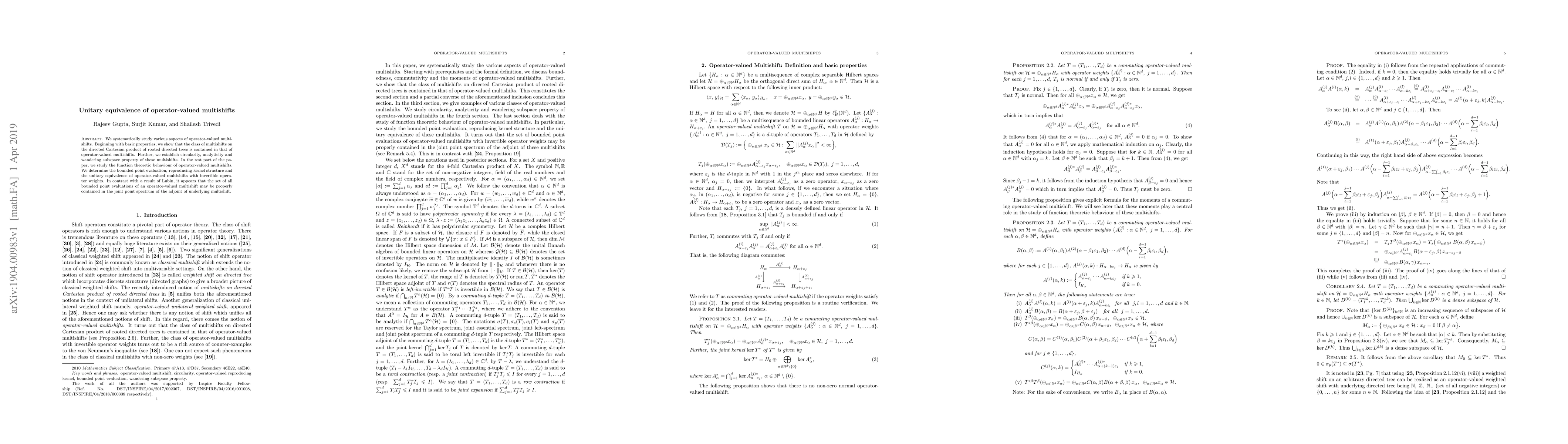 This paper investigates operator-valued multishifts, establishing their circularity, analyticity, and wandering subspace properties. It also explores unitary equivalence with invertible operator weights and contrasts the bounded point evaluations with the joint point spectrum of the adjoint multishift.