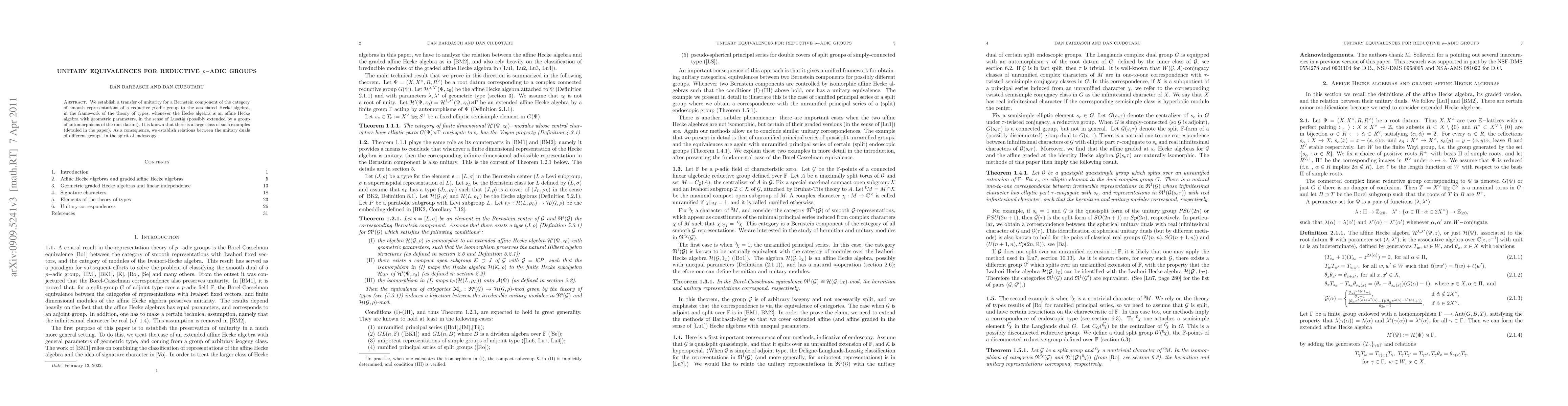 The paper establishes unitarity transfer for Bernstein components of smooth representations of reductive p-adic groups to associated affine Hecke algebras, leveraging the theory of types. It also explores implications for the unitary duals of different groups, aligning with the principles of endoscopy.