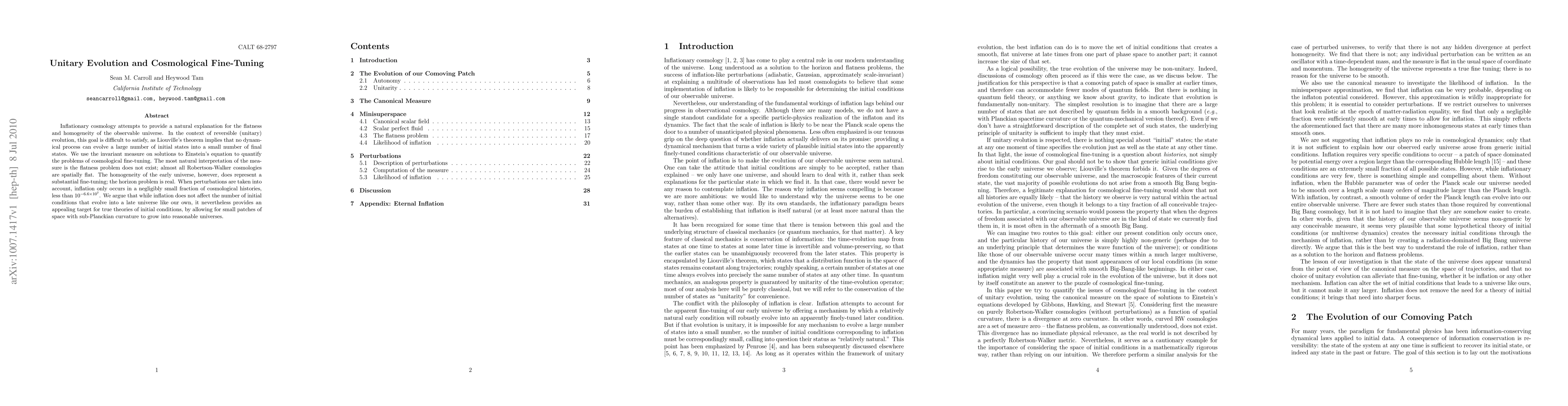 The flatness problem in cosmology is largely resolved under reversible evolution, but homogeneity remains a fine-tuning issue. Inflationary models create a tiny fraction of possible universes with suitable conditions.