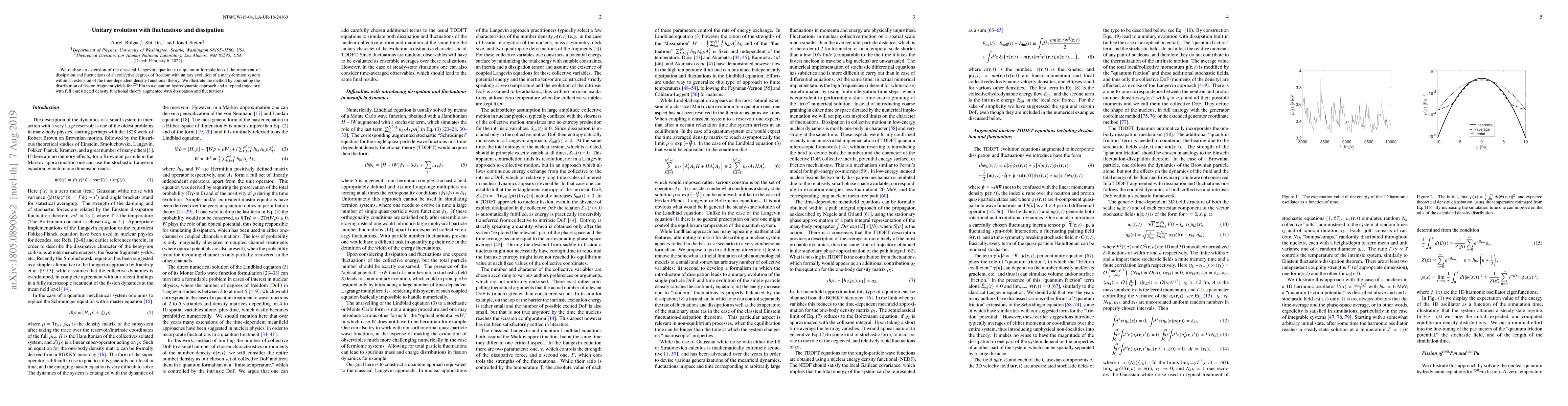 We outline an extension of the classical Langevin equation to a quantum formulation of the treatment of dissipation and fluctuations of all collective degrees of freedom with unitary evolution of a many-fermion system within an extension of the time-dependent density functional theory. We illustrate the method by computing the distribution of fission fragment yields for $^{258}$Fm in a quantum hydrodynamic approach and a typical trajectory with full unrestricted density functional theory augmented with dissipation and fluctuations.
